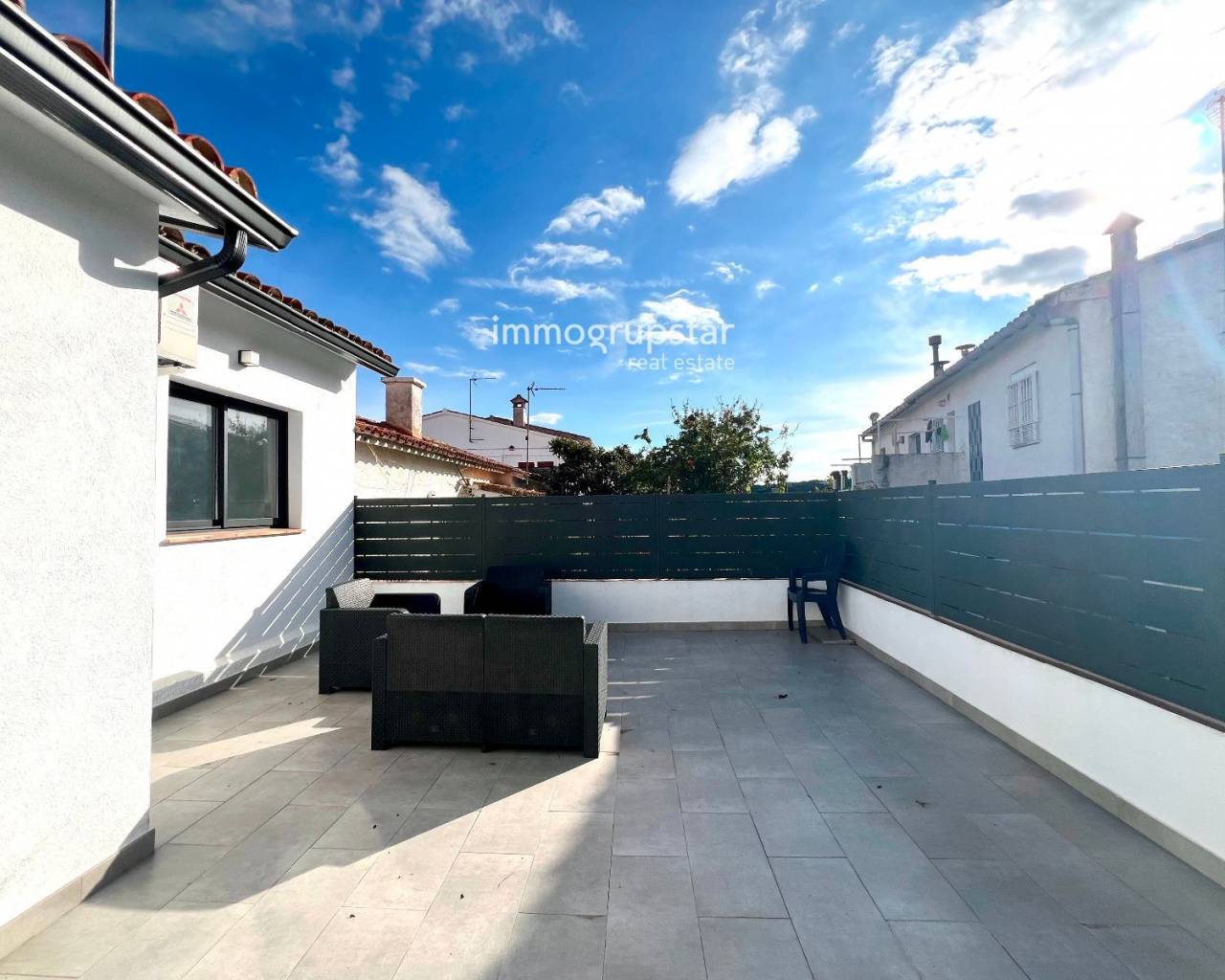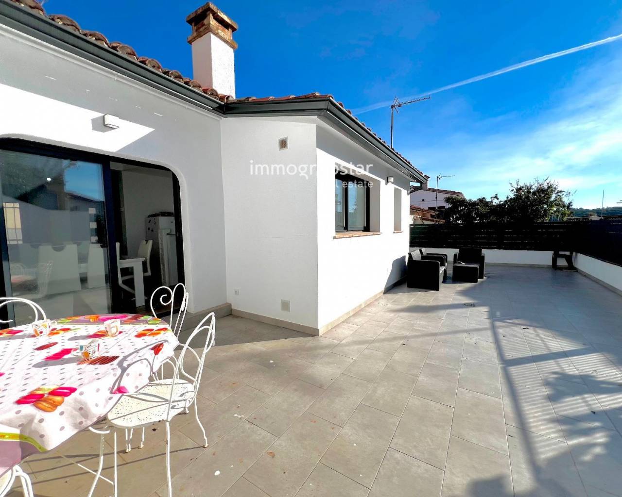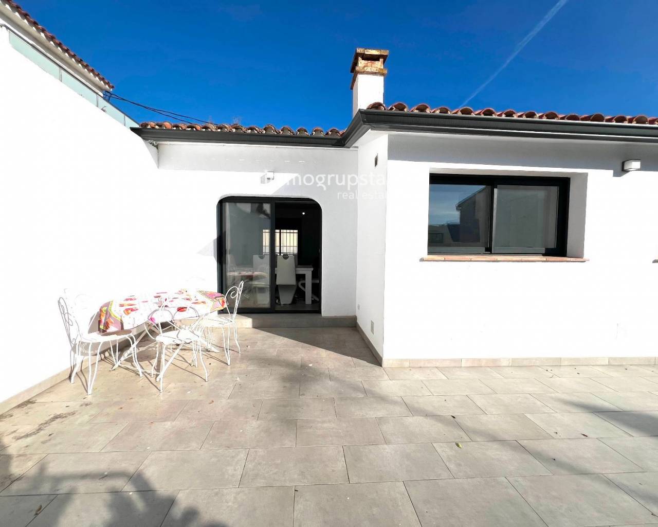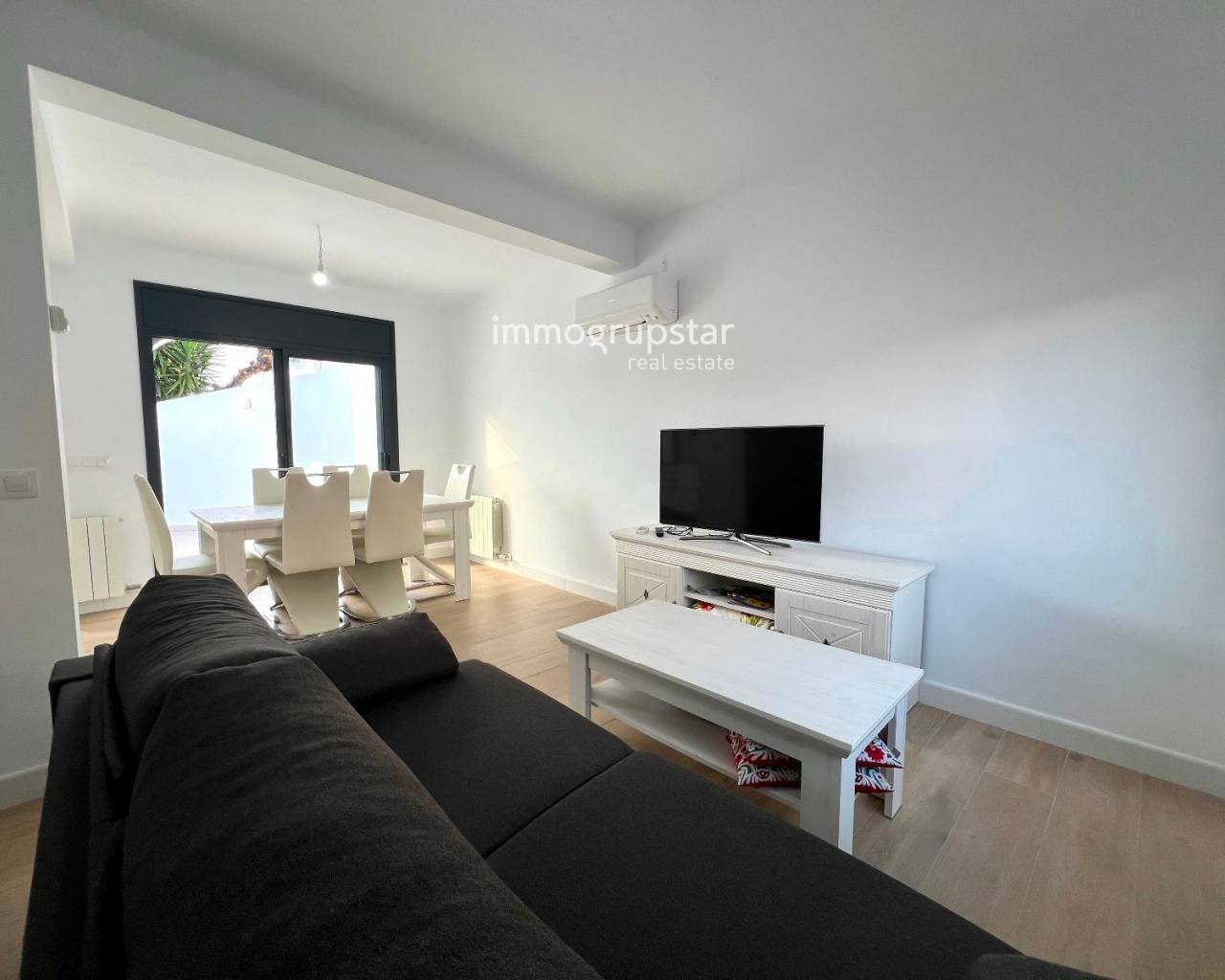 Beautiful, fully renovated townhouse, conveniently and practically laid out on a single floor. The property boasts a large terrace of approximately 60 m², a spacious outdoor area directly accessible from the living-dining room, offering multiple possibilities: a chill-out zone, an al fresco dining area, a play area, or simply a perfect spot to relax and enjoy the pleasant weather. The property has a constructed area of 78 m² and features three double bedrooms, all very bright, ideal for families or those needing additional space for an office, guests, or storage. The house also includes two full bathrooms, renovated with modern materials and a contemporary design. The kitchen is spacious, functional, and designed for everyday use, with more than enough room for comfortable cooking. The living-dining room, in addition to being spacious, connects directly to the terrace, adding a sense of openness and light to the entire living area. The house is equipped with heating, ensuring comfort year-round. Overall, it is a welcoming, practical and move-in ready home, perfect for those seeking comfort in a peaceful environment without sacrificing a large outdoor space.
