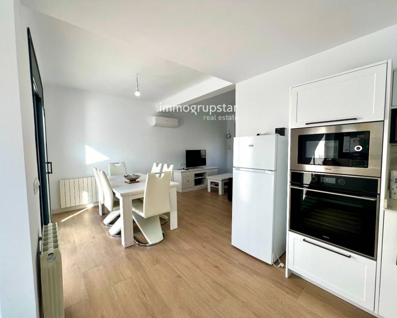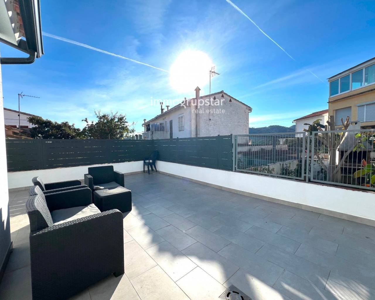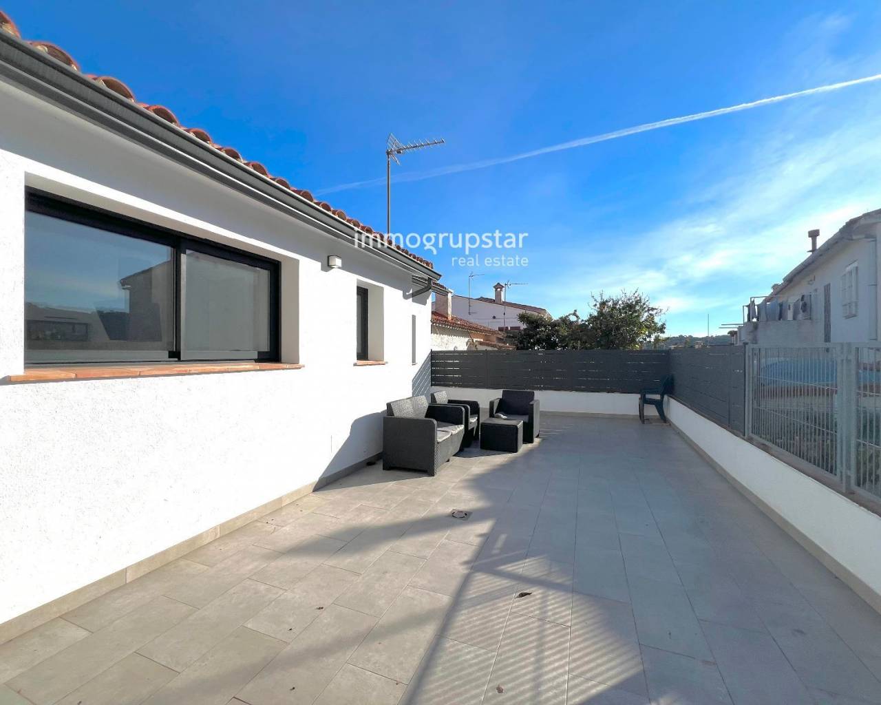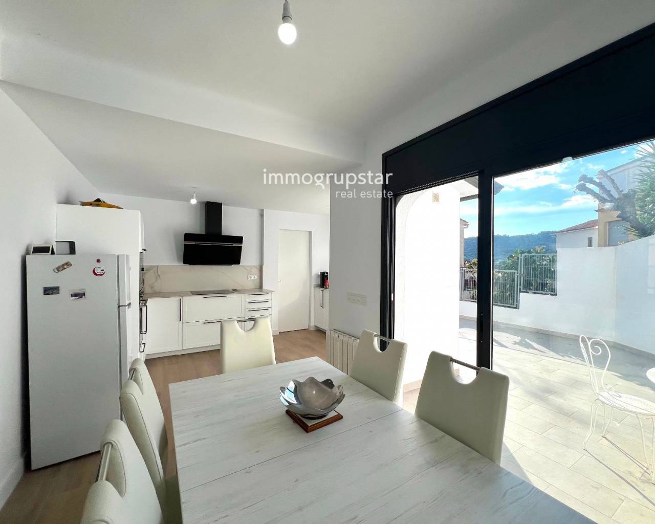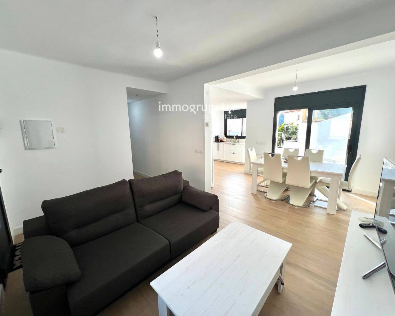 Beautiful, fully renovated townhouse, conveniently and practically laid out on a single floor. The property boasts a large terrace of approximately 60 m², a spacious outdoor area directly accessible from the living-dining room, offering multiple possibilities: a chill-out zone, an al fresco dining area, a play area, or simply a perfect spot to relax and enjoy the pleasant weather. The property has a constructed area of 78 m² and features three double bedrooms, all very bright, ideal for families or those needing additional space for an office, guests, or storage. The house also includes two full bathrooms, renovated with modern materials and a contemporary design. The kitchen is spacious, functional, and designed for everyday use, with more than enough room for comfortable cooking. The living-dining room, in addition to being spacious, connects directly to the terrace, adding a sense of openness and light to the entire living area. The house is equipped with heating, ensuring comfort year-round. Overall, it is a welcoming, practical and move-in ready home, perfect for those seeking comfort in a peaceful environment without sacrificing a large outdoor space.