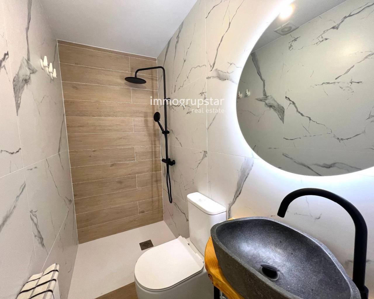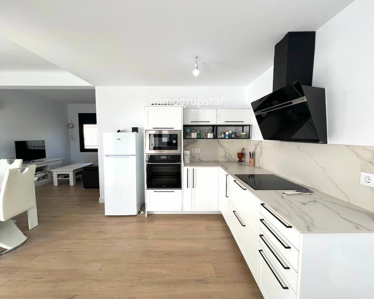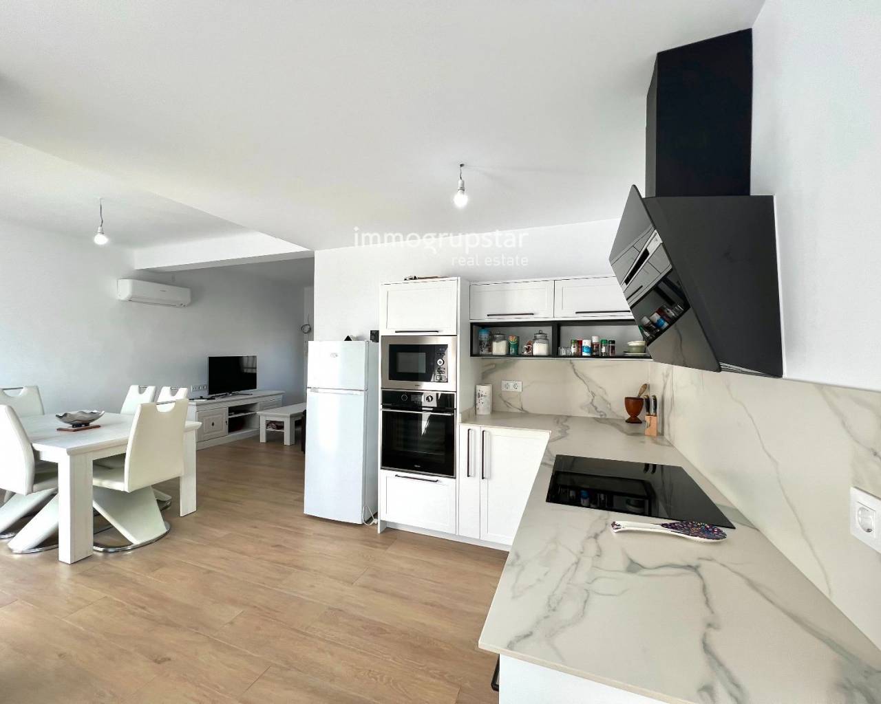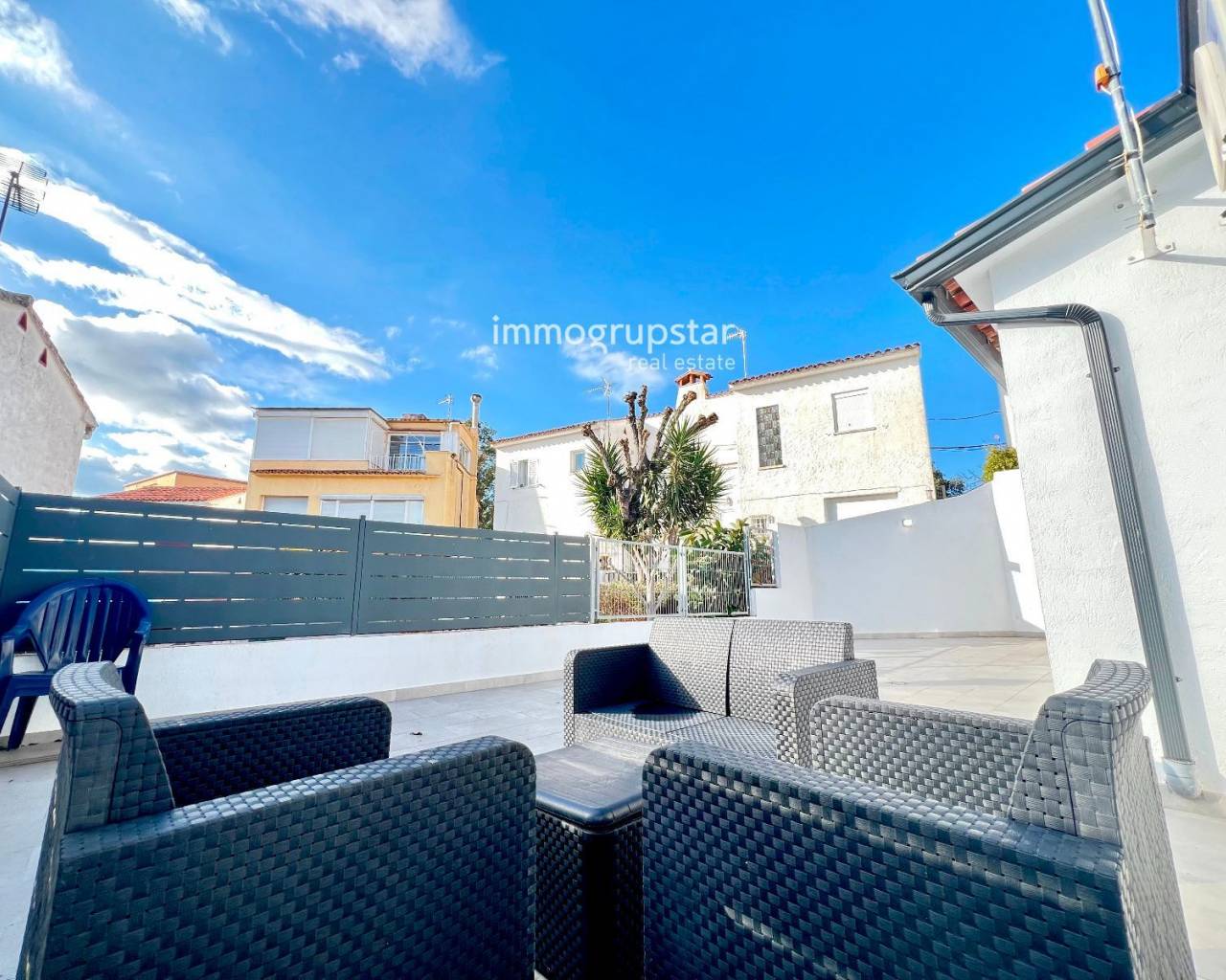 Beautiful, fully renovated townhouse, conveniently and practically laid out on a single floor. The property boasts a large terrace of approximately 60 m², a spacious outdoor area directly accessible from the living-dining room, offering multiple possibilities: a chill-out zone, an al fresco dining area, a play area, or simply a perfect spot to relax and enjoy the pleasant weather. The property has a constructed area of 78 m² and features three double bedrooms, all very bright, ideal for families or those needing additional space for an office, guests, or storage. The house also includes two full bathrooms, renovated with modern materials and a contemporary design. The kitchen is spacious, functional, and designed for everyday use, with more than enough room for comfortable cooking. The living-dining room, in addition to being spacious, connects directly to the terrace, adding a sense of openness and light to the entire living area. The house is equipped with heating, ensuring comfort year-round. Overall, it is a welcoming, practical and move-in ready home, perfect for those seeking comfort in a peaceful environment without sacrificing a large outdoor space.
