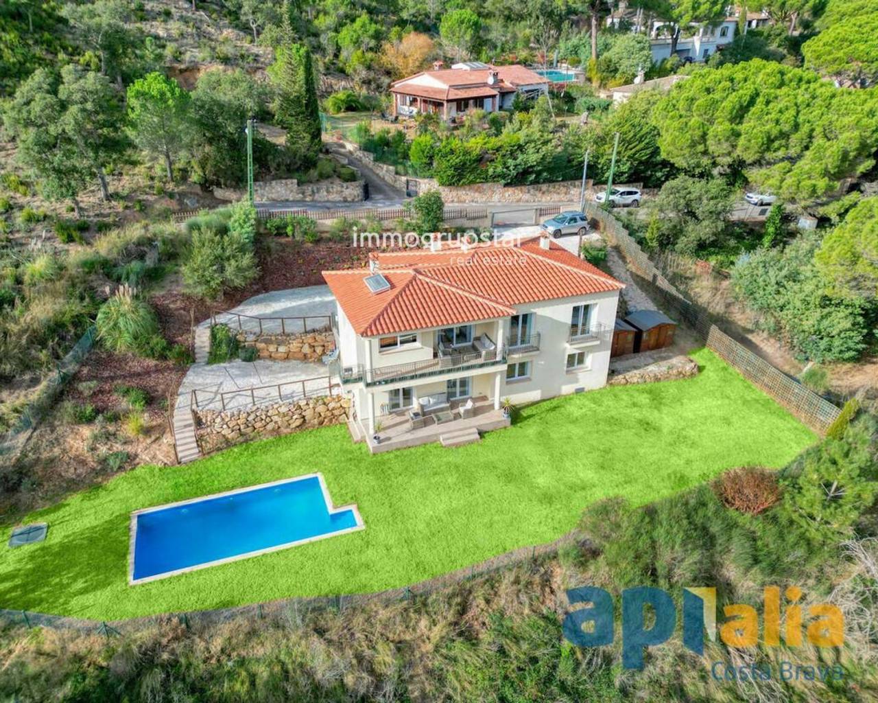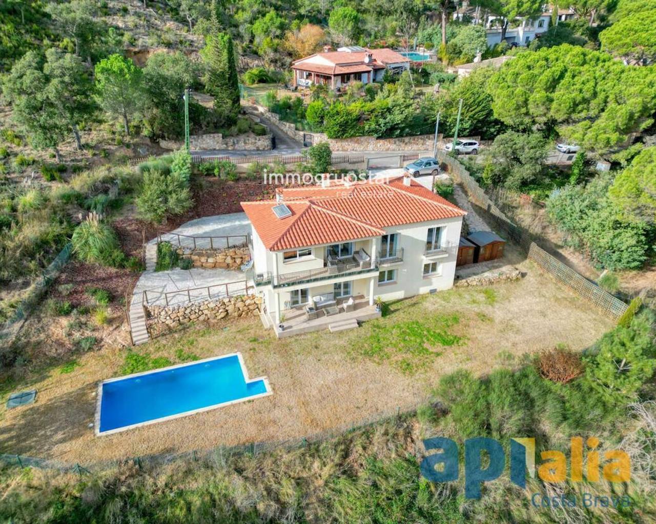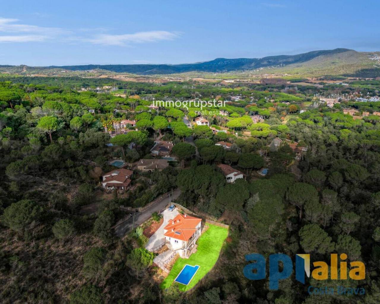 Magnificent, solidly built house (2018), located at the end of a street with open views of the mountains and green areas. Spacious rooms, large terrace, flat garden with swimming pool, and maximum privacy. 10 minutes from beaches and the city center. Comfort, efficiency, and an exclusive setting.
