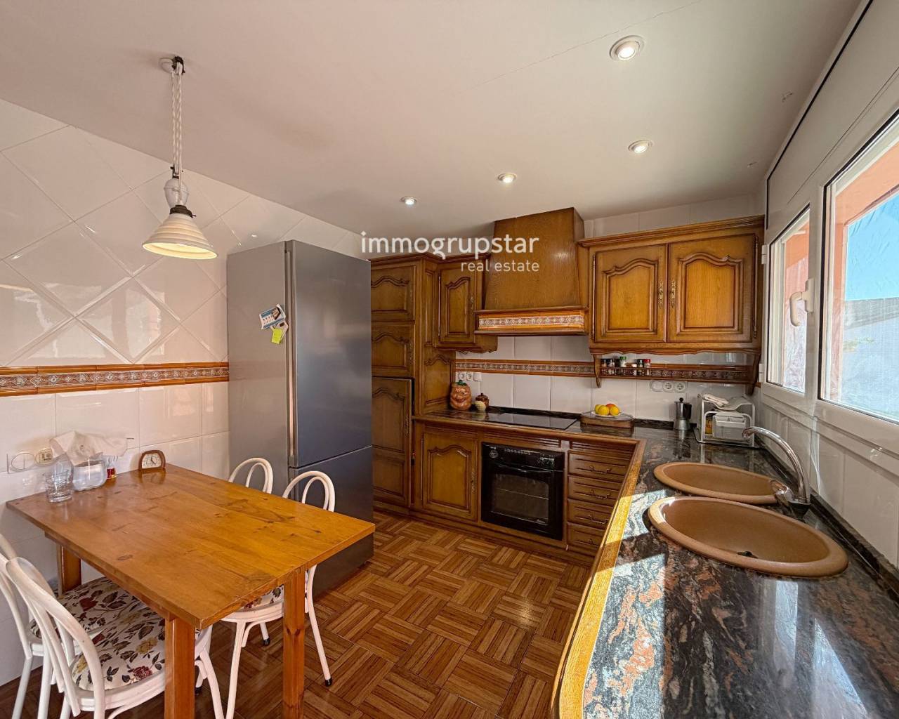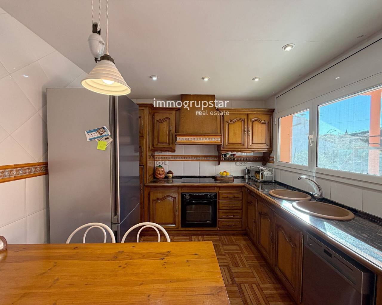 This magnificent two-storey property stands out for its spaciousness, the excellent natural light in all its rooms and a carefully designed outdoor area where you can enjoy peace and privacy. It consists of two connected properties, making it an ideal option for families who want independence without sacrificing proximity. The exterior offers a high level of privacy thanks to its wooden and stone enclosure, a large, perfectly maintained garden and a private swimming pool that invites you to enjoy the outdoors all year round. On the ground floor, there is a bright living-dining room with direct access to the garden, a separate classic-style kitchen, a suite with a private bathroom, a second modern kitchen, a dining room with a fireplace, and a guest toilet. The porcelain stoneware floors provide durability, comfort, and an elegant aesthetic throughout the floor. The upper floor has three double bedrooms—one of which is en suite—an office or single bedroom, and a large terrace that guarantees privacy and offers unobstructed views. A versatile, functional and charming property, perfectly equipped and designed for those who value space, comfort and a welcoming atmosphere both indoors and outdoors.