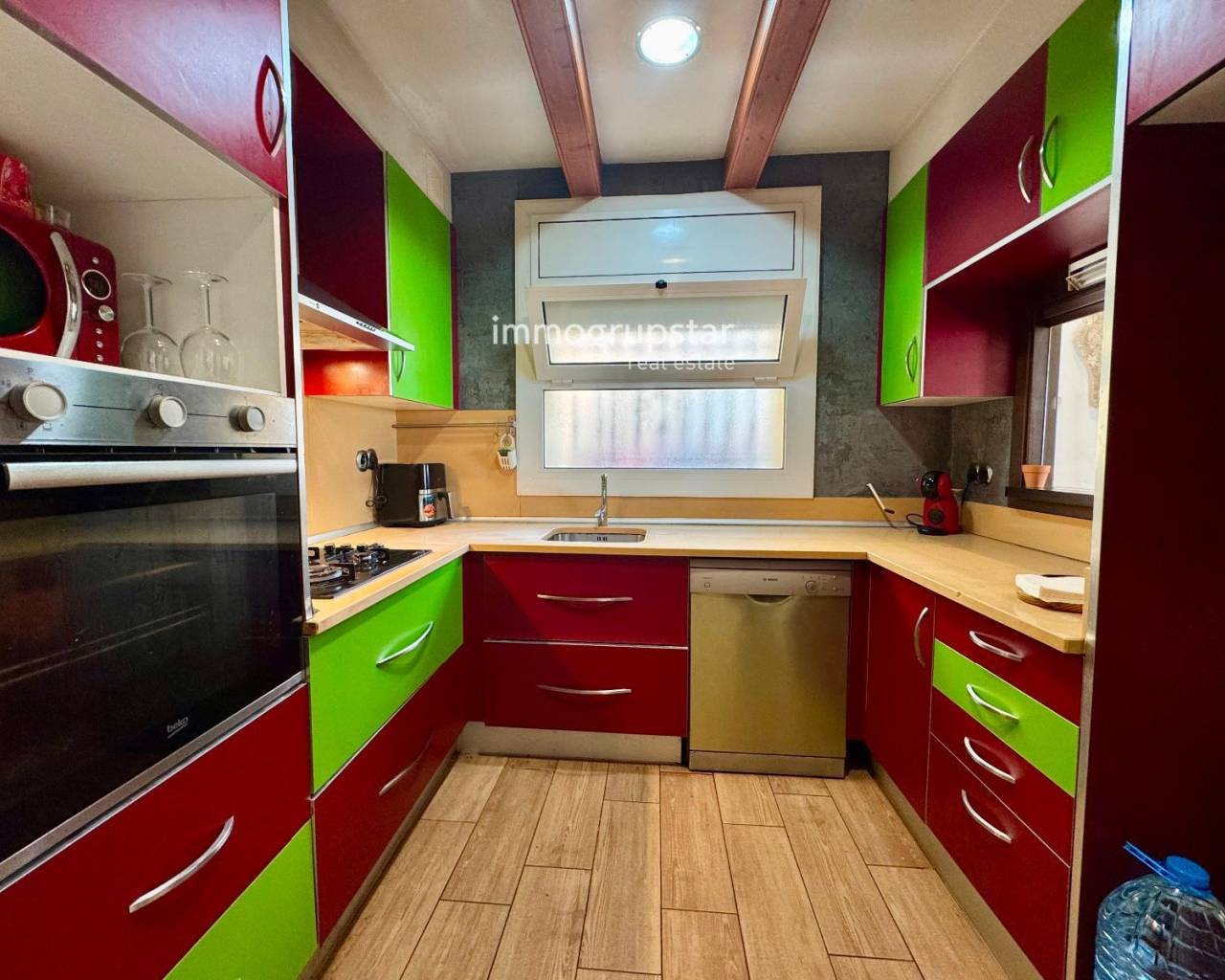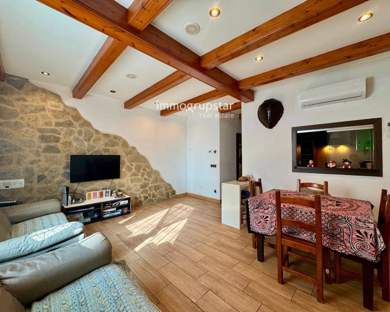 Exclusive Apialia: Spectacular ground floor apartment in Palamós, located on Mallorca Street, just 150 meters from the beach, in an incredible location with all the supplies available (supermarkets, pharmacies, shops, restaurants and public transport). The habitation is part of a historic building, one of the first constructions on the beach, which preserves original details on the walls with the exposed work, providing a unique and authentic charm. It will be reformed in 2012 and is in excellent condition. It has 3 bedrooms, one type suite, and two complete bathrooms with a private bathroom, offering comfort and privacy. The living room is spacious and bright, ideal for everyday use, and has split air conditioning for greater comfort. The kitchen is independent, practical and functional, with access to the menjador. L'habitatge has city gas, guaranteed efficiency and convenience. Optionally, a 55 m² garage is offered that communicates internally with the habitation, for a price of €65,000, ideal as a parking space, storage room or multipurpose space. A property with two characters, combining history, privileged location and modern comfort, perfect for both a regular residence and a second residence close to the sea.