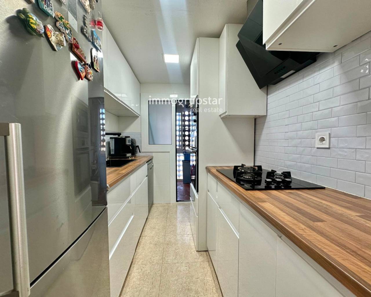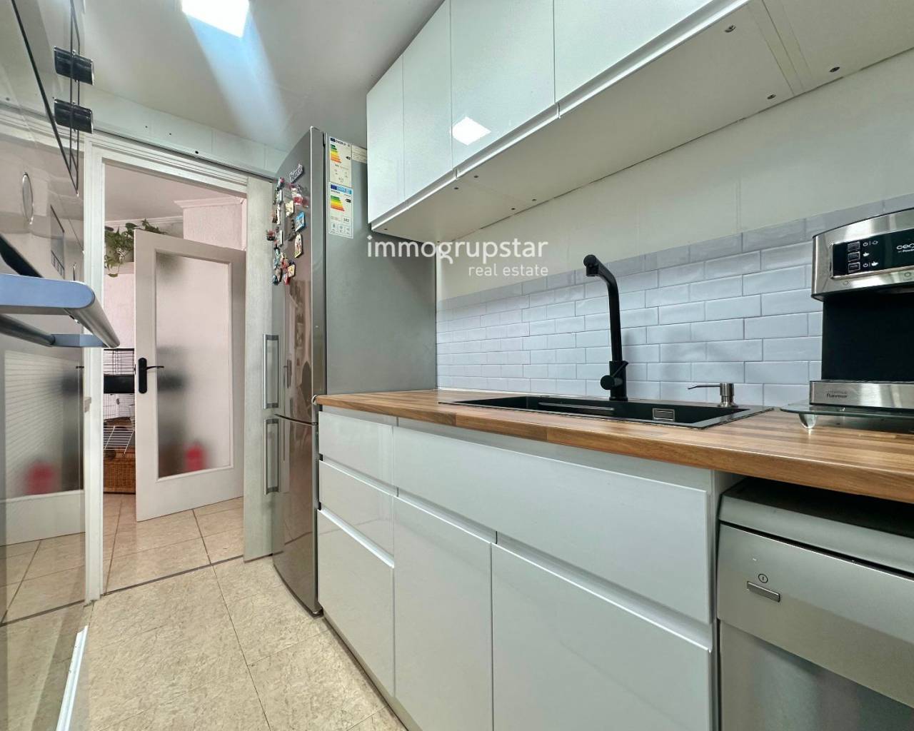 Exclusive property from Immogrupstar.Magnificent flat located in the quiet and sought-after area of Aro Gran, in Platja d'Aro.The property has 3 bedrooms, one of which is a master suite and two spacious single bedrooms, all with large built-in wardrobes. It has 2 fully refurbished bathrooms: the bathroom in the suite has a shower tray and the second has a bathtub.The modern and functional kitchen has been recently renovated and is equipped with new appliances. It leads to a large laundry/utility room, which is very practical for everyday use.The bright and cosy living-dining room has direct access to a large terrace, ideal for enjoying the outdoors and the area's good climate.The building offers an extensive communal garden with well-maintained green areas, a children's playground and a barbecue area, perfect for family enjoyment. It also has a lift.On the same street, just a few metres from the building, there is a swimming pool belonging to a private sports club. The flat is sold fully furnished and is equipped with natural gas heating and air conditioning, ready to move into.