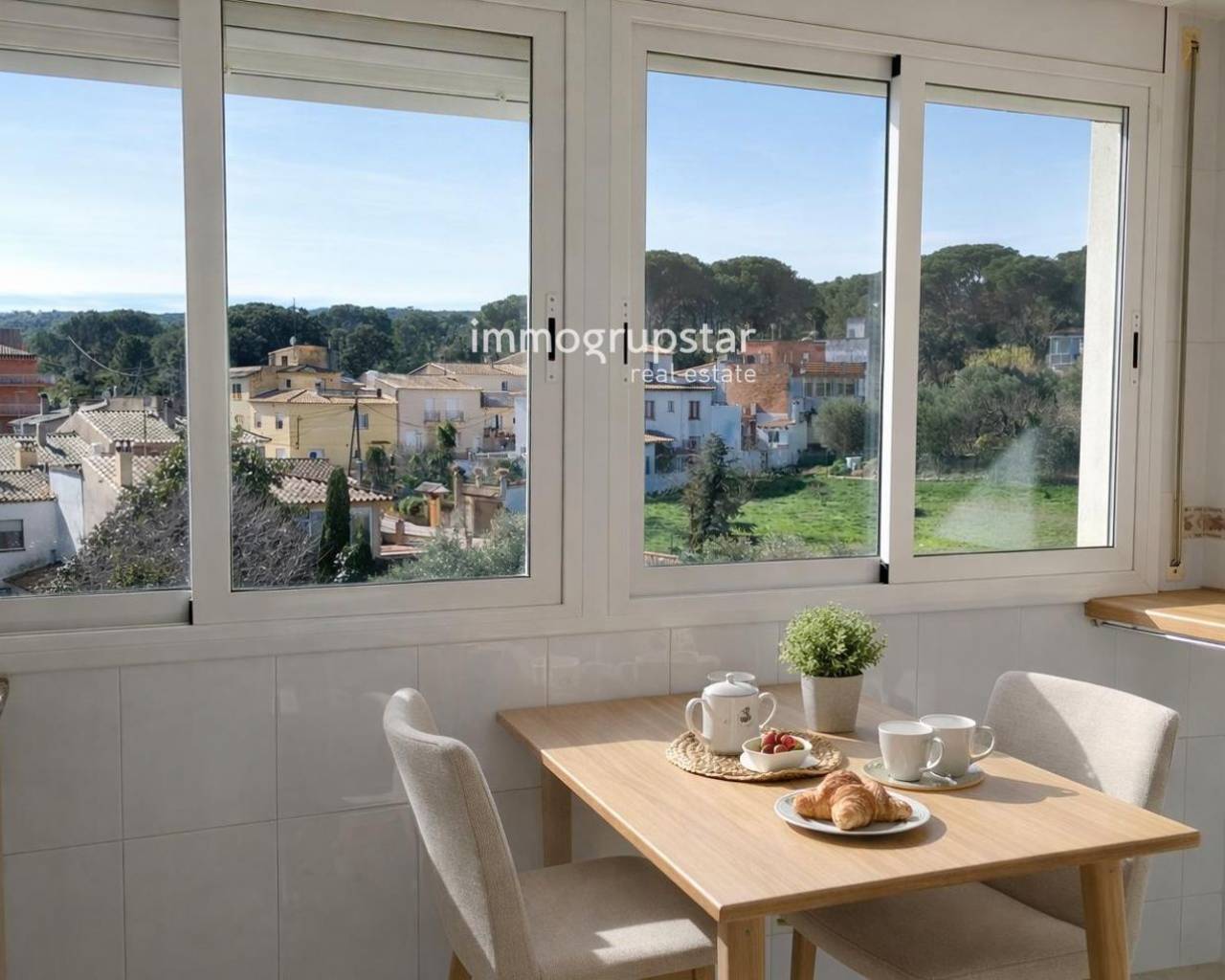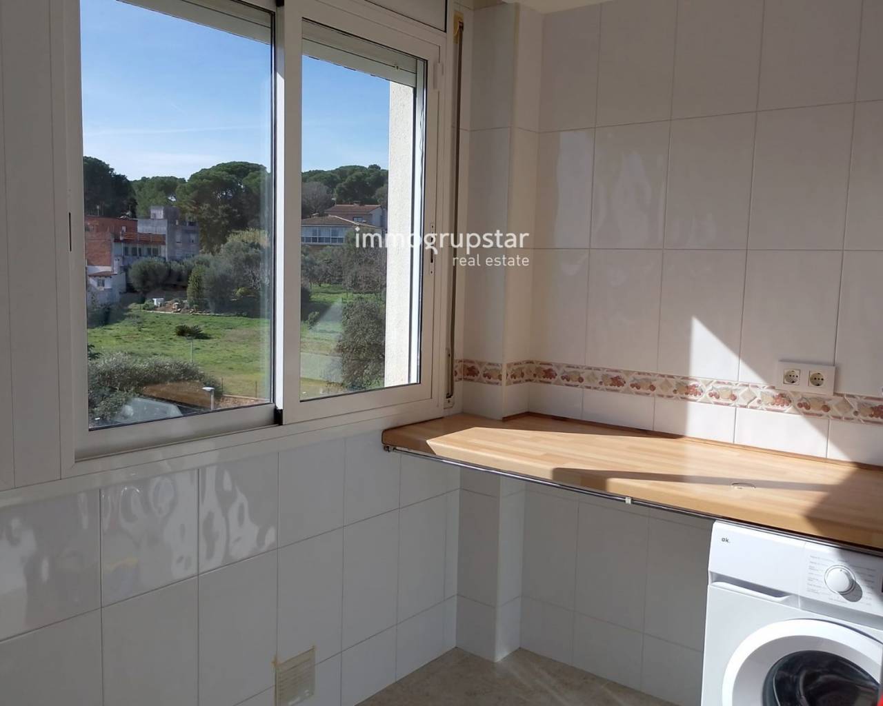 Located on the third and top floor of a well-maintained brick building, this attractive apartment offers a perfect combination of comfort, light, and tranquility in a highly sought-after residential area of Baix Empordà, just minutes from the beaches of the Costa Brava. The property features two double bedrooms, both with built-in wardrobes, ideal as a primary residence, a second home, or an investment. It includes a full bathroom with a bathtub and a spacious, functional, and bright independent kitchen with ample room for a breakfast table. The heart of the apartment is its fantastic living-dining room, spacious and bright, with direct access to a pleasant terrace. From here, you can enjoy unobstructed views that create a sense of spaciousness and allow you to contemplate the sea in the distance—a rare and valuable feature. The property is equipped with natural gas heating, ensuring year-round comfort. It also includes a parking space for a large car, with the significant advantage of direct access to the elevator from the parking area itself, providing maximum convenience for everyday life. The building is part of a quiet, well-maintained, and family-friendly community with a garden area and communal swimming pool, perfect for enjoying the Mediterranean climate. Overall, this is a very complete, bright, and well-located property, ideal for those seeking a high quality of life near the Mediterranean Sea in a relaxed residential setting.