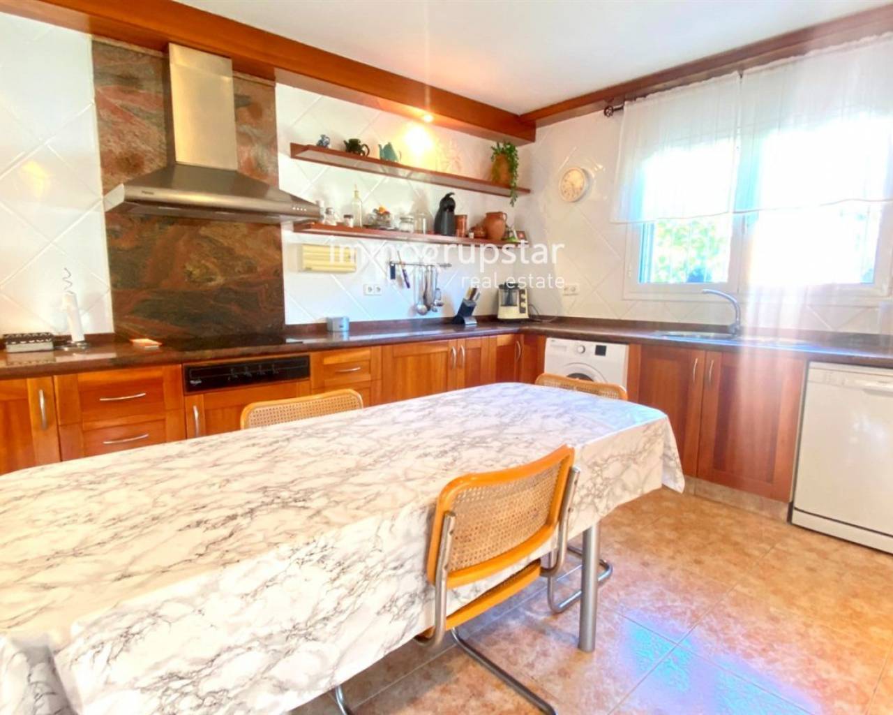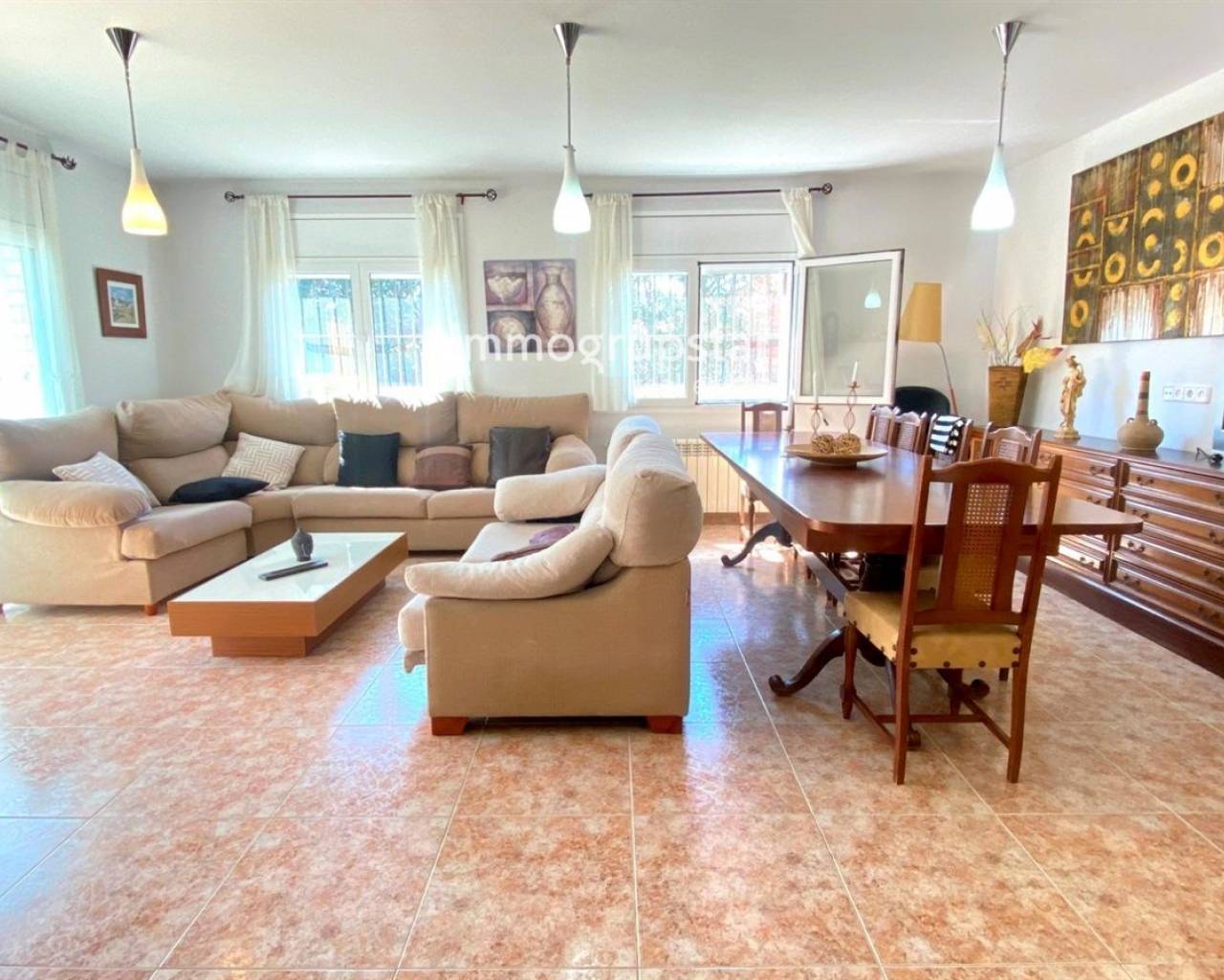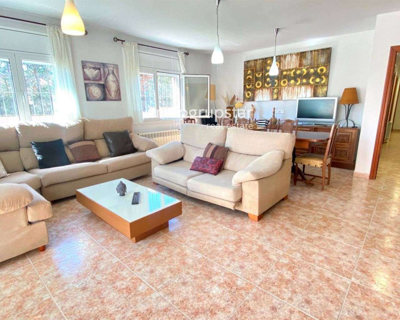 Cette belle maison individuelle de plain-pied est parfaite pour ceux qui recherchent confort et espace. En entrant, vous trouverez un salon spacieux, avec accès direct à un grand porche, idéal pour profiter de dîners en plein air. La maison dispose de 5 chambres doubles et de 2 salles de bain complètes, parfaite pour les familles nombreuses ou ceux qui recherchent un espace supplémentaire pour les invités. La grande cuisine équipée est conviviale pour préparer de délicieux repas pour votre famille et vos amis. Le jardin dispose d'un espace barbecue et d'une piscine privée, idéal pour profiter du soleil et du climat méditerranéen. De plus, le gazon artificiel est facile à entretenir et offre un environnement agréable et accueillant. La maison dispose du chauffage au fioul, confortable pour rester au chaud pendant les journées d'hiver les plus froides. La maison est située sur un grand terrain plat de 1 019 m², orienté sud et est, vous profiterez ainsi du soleil toute la journée. De plus, la maison dispose d'une terrasse et d'un débarras, parfaits pour ranger vos affaires. La maison a été construite en 2002 et est en bon état, prête à emménager pour profiter de votre nouvelle maison. Qu'attendez-vous ? Contactez-nous dès aujourd'hui pour planifier une visite!