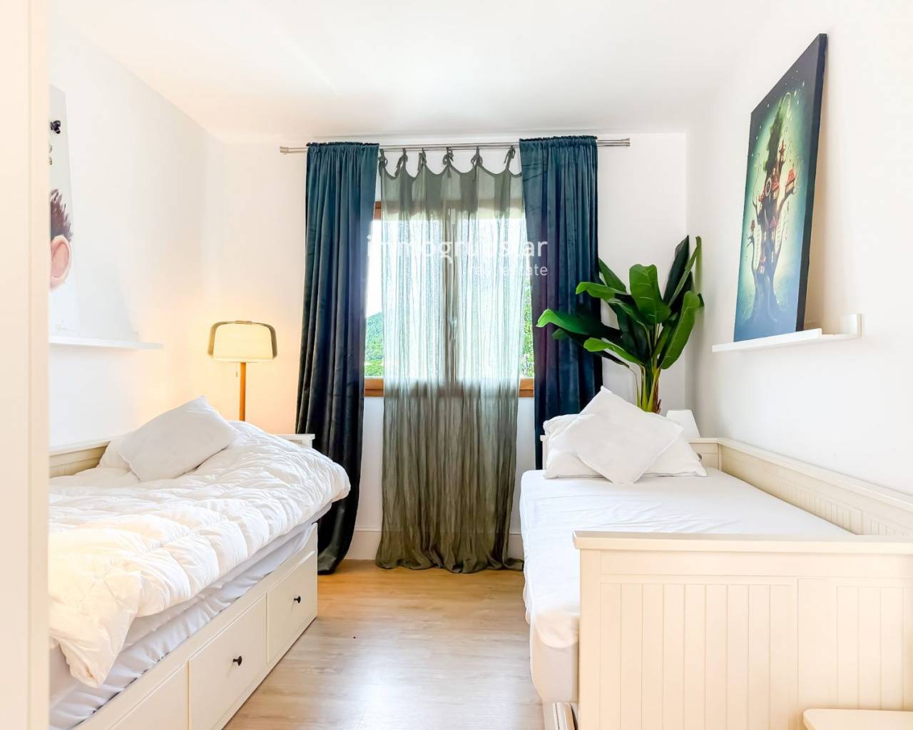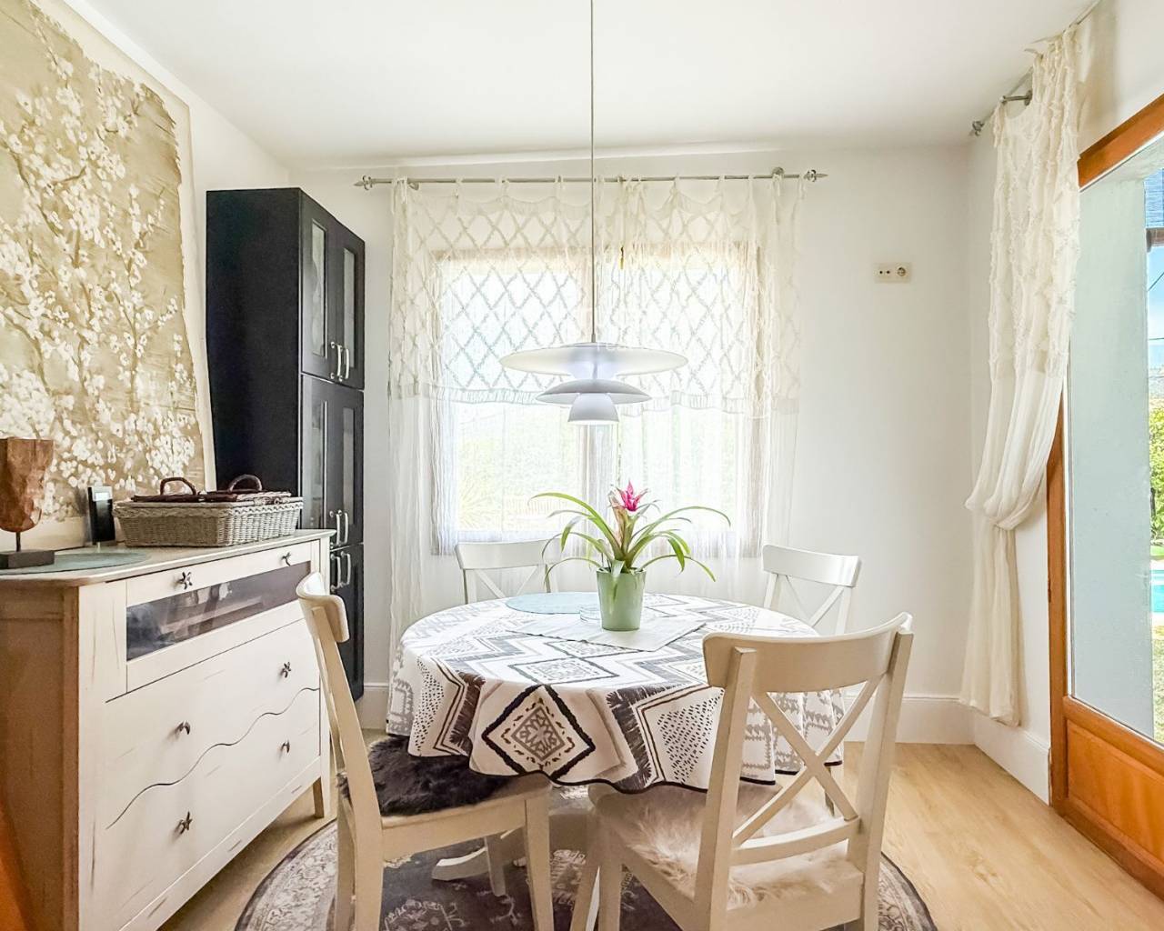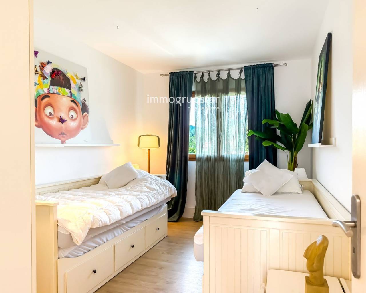 La maison a été construite en 2005 sur un terrain de 492 m² et s'étend sur deux étages. En entrant, on découvre une entrée spacieuse desservant les chambres et les salles de bains. À cet étage, on trouve deux chambres doubles avec salle de bains commune avec douche, et une suite parentale avec salle de bains attenante avec baignoire. Cet étage donne également accès à une grande pièce pouvant être transformée en chambre supplémentaire. Le couloir dessert un escalier menant à un spacieux salon avec cheminée et climatisation. De grandes fenêtres offrent une belle luminosité et donnent accès au jardin. À cet étage, on trouve une autre chambre, actuellement utilisée comme bureau, et une salle de bains avec douche. La spacieuse cuisine entièrement équipée donne également accès au jardin. Ce dernier comprend une grande terrasse couverte, un espace détente et une piscine. 16 panneaux solaires sont actuellement installés, dont un pour l'eau chaude sanitaire. Cela garantit une très faible consommation d'énergie. Charges annuelles approximatives : Souhaitez-vous plus d'informations sur ce bien ou organiser une visite ? Alors n'hésitez pas à nous contacter !