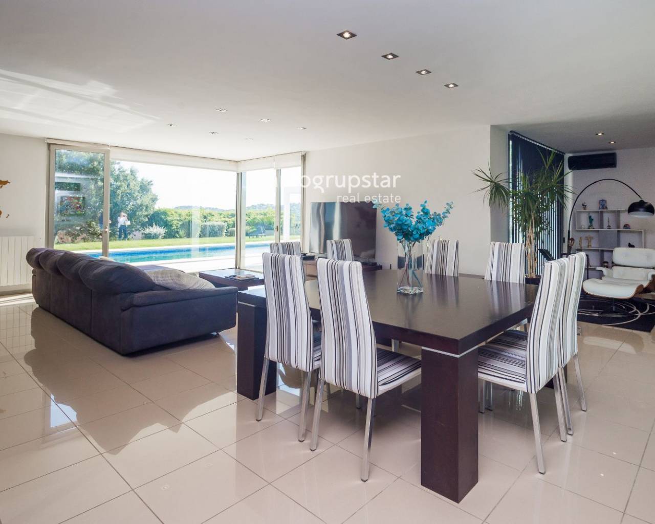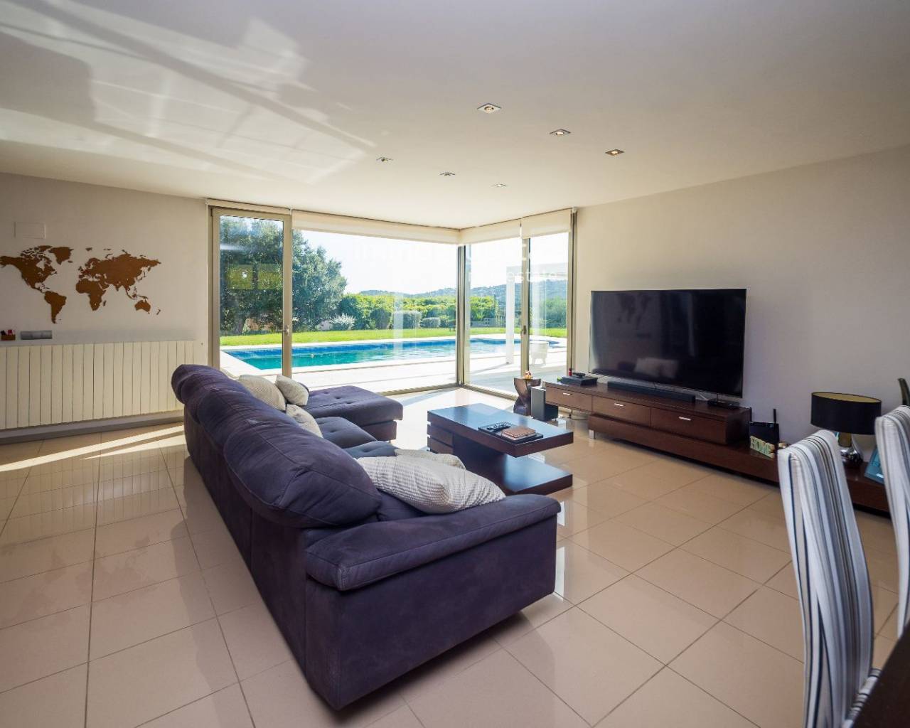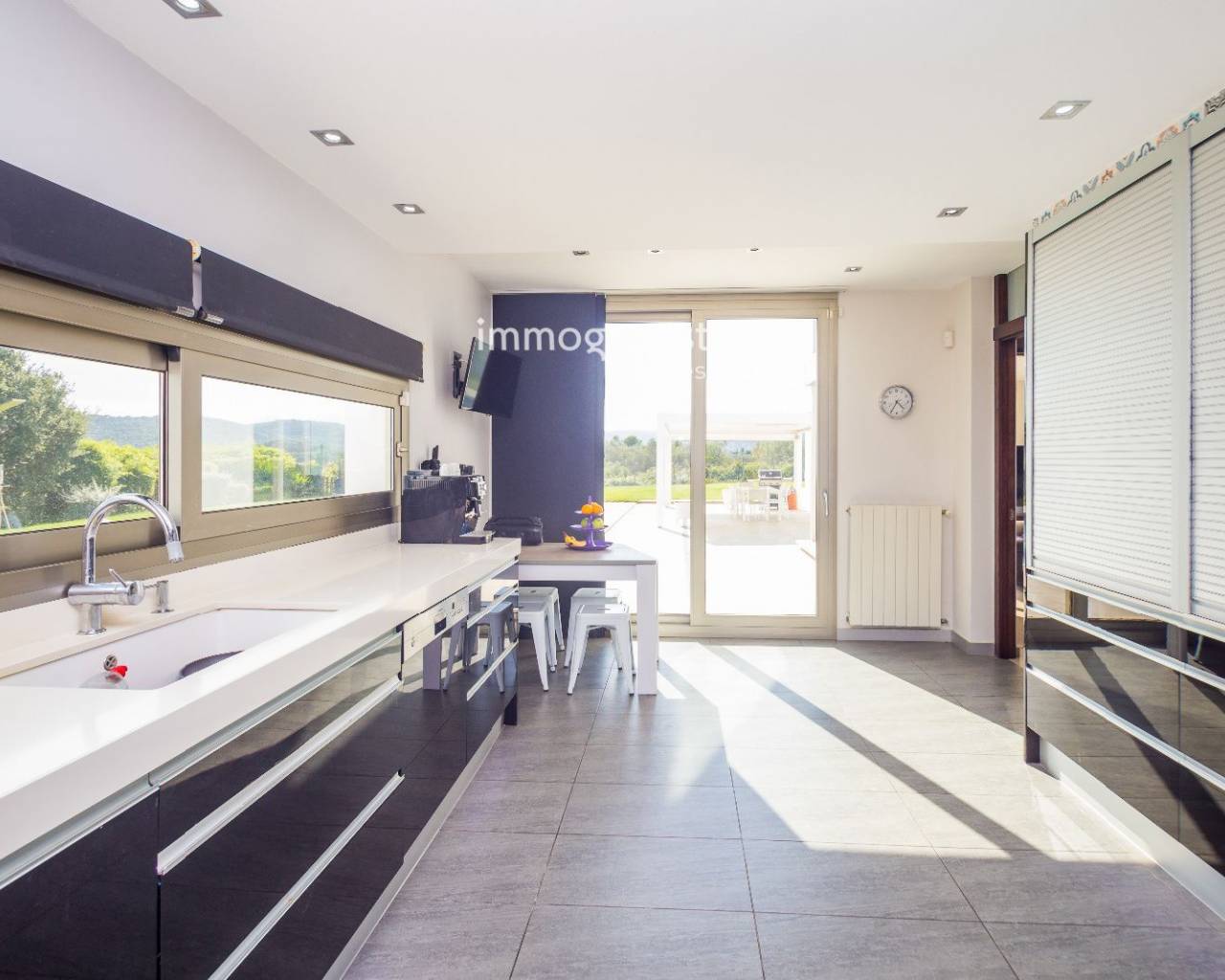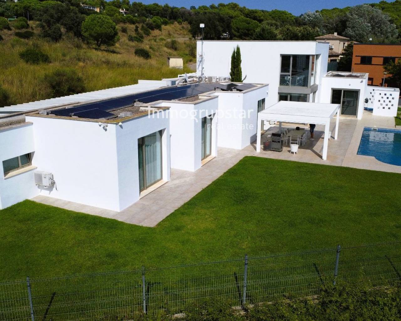 J'attends votre appel ! Découvrez cette spectaculaire villa contemporaine à Sant Antoni de Calonge ! Située dans un quartier résidentiel calme, cette propriété est le refuge idéal pour ceux qui recherchent le confort et le style. À seulement 5 minutes de belles plages et du centre-ville, vous profiterez du meilleur emplacement sans renoncer à la tranquillité et à l'intimité qu'offre cette maison.Construite en 2005 sur un vaste terrain de 1 328 m², la villa se distingue par son design moderne et fonctionnel. Elle dispose d'une superficie de 449 m², répartie principalement sur un seul étage, et bénéficie de pièces lumineuses grâce à son excellente orientation qui permet à la lumière naturelle d'entrer tout au long de la journée. L'élégante entrée donne accès à un grand salon-salle à manger avec de grandes baies vitrées, idéal pour profiter de moments inoubliables. La cuisine moderne, entièrement équipée et dotée d'un coin petit-déjeuner, est reliée à une charmante terrasse avec barbecue et à un jardin soigné.La zone nuit, également située au rez-de-chaussée, comprend trois grandes chambres, toutes équipées de placards intégrés et d'une salle de bain privée. La chambre principale est une véritable oasis, avec une salle de bain complète comprenant une douche, une baignoire d'hydromassage et un dressing. À l'étage supérieur, un grand espace ouvert peut être utilisé comme bureau, offrant une vue panoramique imprenable sur les montagnes.La propriété dispose également d'un garage privé pouvant accueillir plusieurs véhicules et d'un parking extérieur supplémentaire. Des équipements modernes tels que des panneaux solaires, un chargeur pour voiture électrique, le chauffage au gaz naturel et la climatisation garantissent confort et durabilité. Le jardin plat et bien entretenu, ainsi que la grande piscine privée et l'espace fitness, font de cette villa un lieu idéal comme résidence principale ou secondaire, à proximité de la mer et de tous les services nécessaires. Ne manquez pas l'occasion de vivre dans ce paradis !