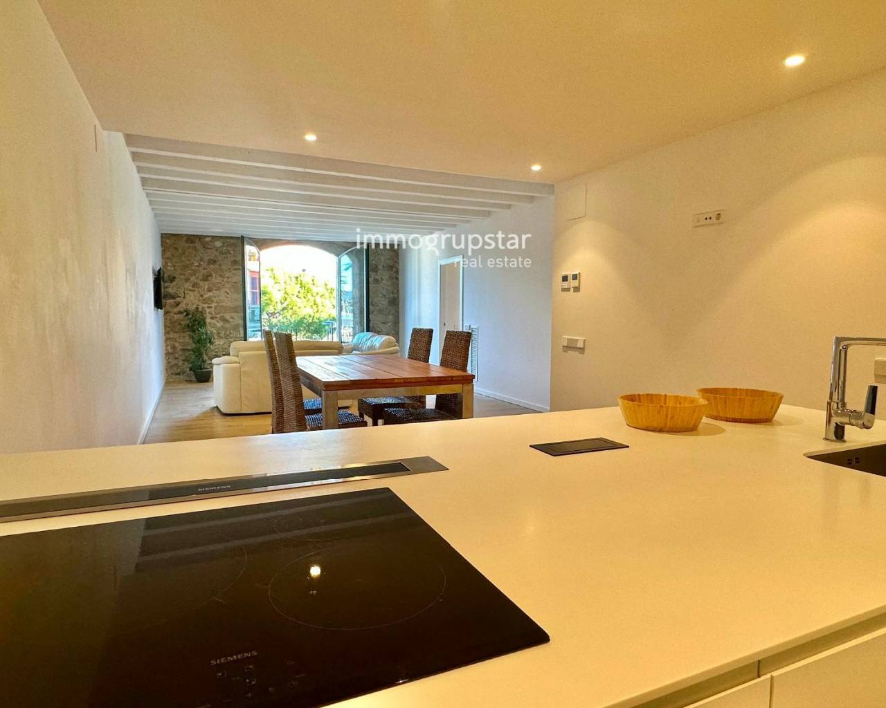 Nous vous présentons ce bien exceptionnel à Palamós, situé dans un quartier privilégié à seulement 200 mètres de la mer. Idéal pour profiter du charme de la Costa Brava toute l'année !Cet appartement spacieux de 125 m² se distingue par son confort, sa luminosité et son cachet. Il se compose de trois chambres doubles, dont une suite parentale, offrant intimité et confort. La cuisine entièrement équipée est pratique et fonctionnelle, parfaite pour le quotidien. Le séjour-salle à manger est l'un des espaces les plus exceptionnels de la propriété, grâce à son magnifique mur en pierre naturelle qui confère authenticité et chaleur à l'ambiance.La propriété est équipée d'une climatisation aérothermique, un système moderne, performant et durable qui garantit un excellent confort thermique toute l'année, tout en réduisant la consommation d'énergie.Depuis le séjour, on accède à une terrasse qui, bien que n'étant pas attenante à la propriété, permet de profiter d'une vue imprenable et du calme environnant.De plus, et c'est l'un des atouts majeurs de cette maison, son garage privé et fermé est une rareté dans ce quartier de Palamós, offrant confort, sécurité et intimité.Une maison de caractère, idéalement située, dotée d'équipements modernes et prête à vous accueillir. Idéale comme résidence principale, secondaire ou investissement grâce à son emplacement exceptionnel.