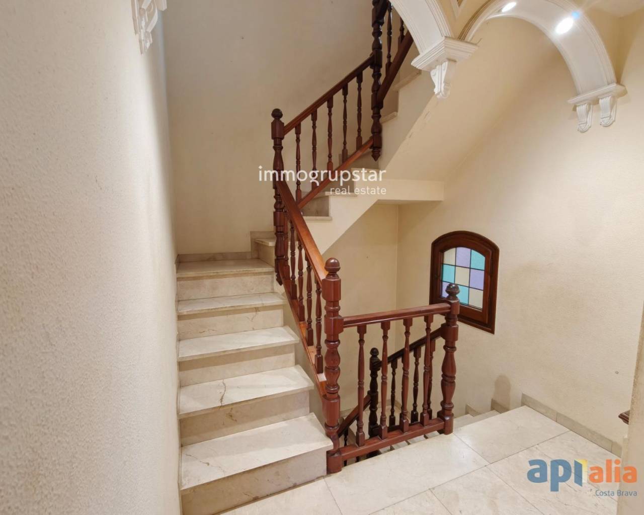 Exclusivité Apialia Costa Brava. Située dans un quartier calme à quelques minutes du centre de Calonge, cette propriété offre un potentiel exceptionnel, idéal pour un projet personnalisé. D'une surface habitable de 235 m², la maison se déploie sur plusieurs niveaux, offrant de beaux volumes et de multiples possibilités de rénovation pour l'adapter à vos goûts et besoins. Le rez-de-chaussée comprend un grand garage avec cave à vin et un espace de rangement de 74 m², parfait pour les véhicules, le stockage ou même la création d'un espace de loisirs supplémentaire. Au premier étage, un hall d'entrée dessert un séjour-salle à manger en demi-niveau avec cheminée, un espace accueillant et lumineux dont on peut profiter en toute saison. La cuisine séparée, de type coin repas, est pratique et fonctionnelle. À ce même niveau, vous trouverez une salle de bain complète et un cellier offrant un espace de rangement supplémentaire très appréciable. Le deuxième étage abrite l'espace nuit, avec quatre chambres (deux doubles et deux simples), une salle de bain complète et un balcon baigné de lumière naturelle. Au deuxième étage, vous trouverez la buanderie et une magnifique terrasse de 37 m² offrant une vue imprenable sur Calonge – un espace idéal pour se détendre, bronzer ou aménager un agréable coin extérieur. La maison bénéficie d'un ensoleillement généreux tout au long de la journée et jouit d'une vue exceptionnelle et d'un emplacement privilégié. Bien qu'elle nécessite des travaux de rénovation, elle représente une excellente opportunité de créer une demeure sur mesure dans l'un des villages les plus charmants du Baix Empordà. Elle possède un fort potentiel pour devenir une résidence véritablement unique.