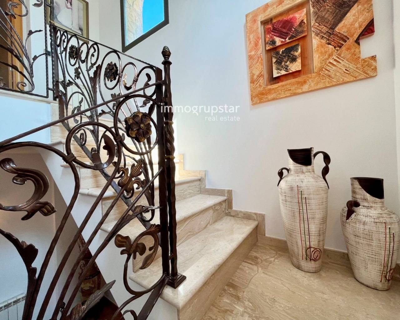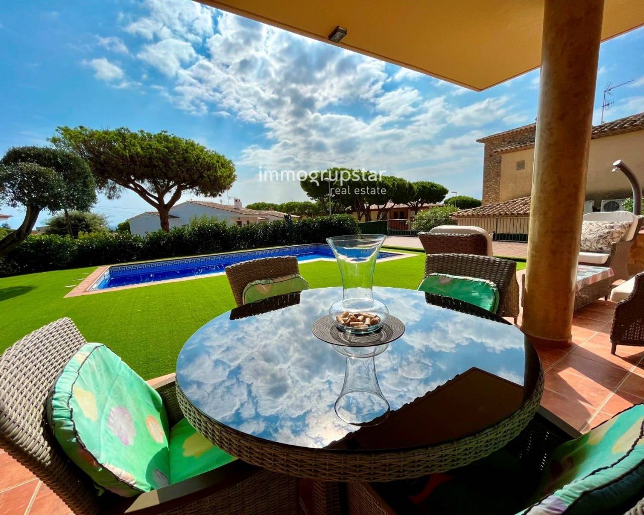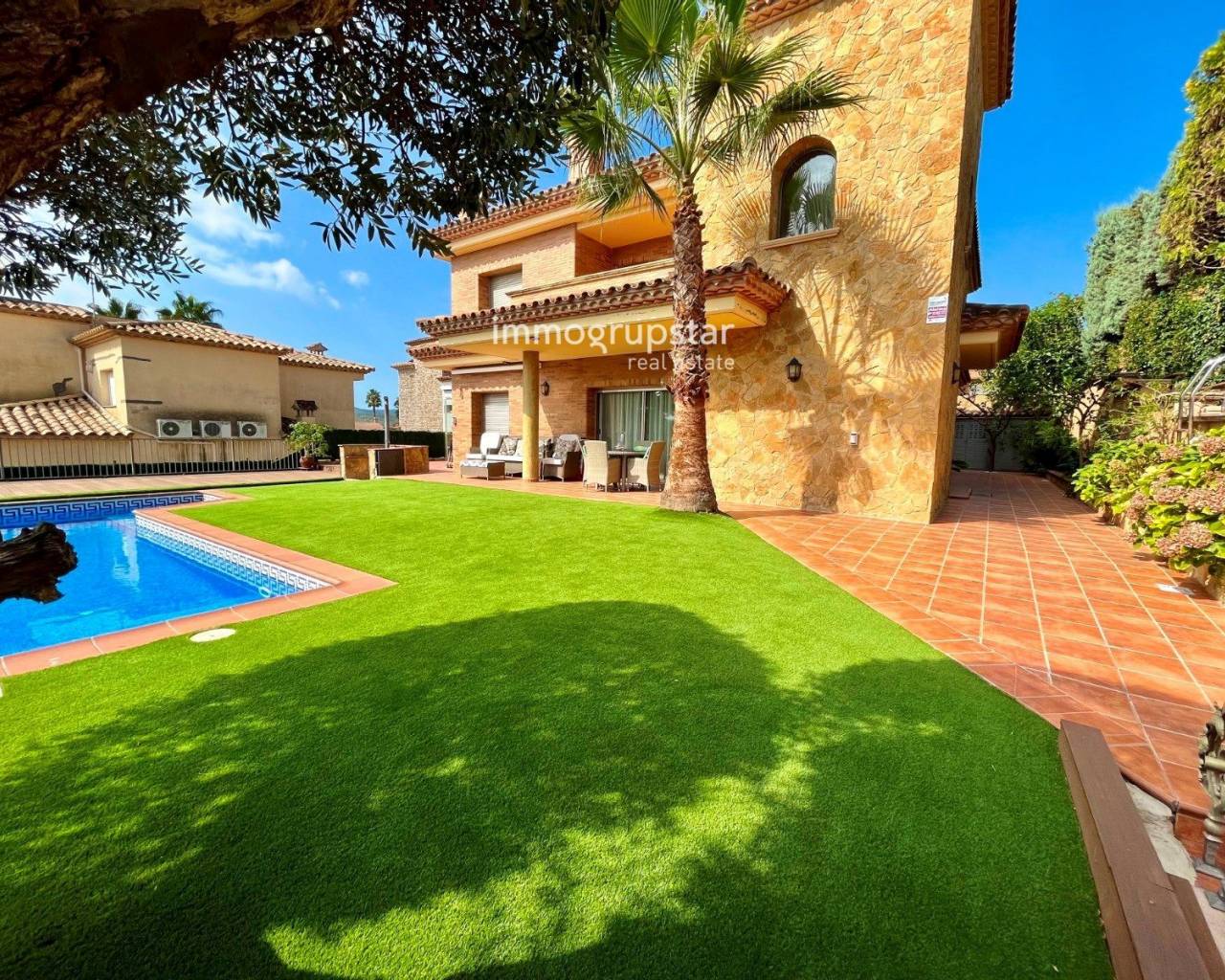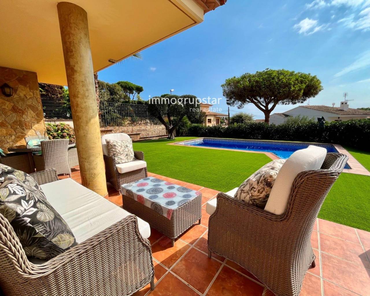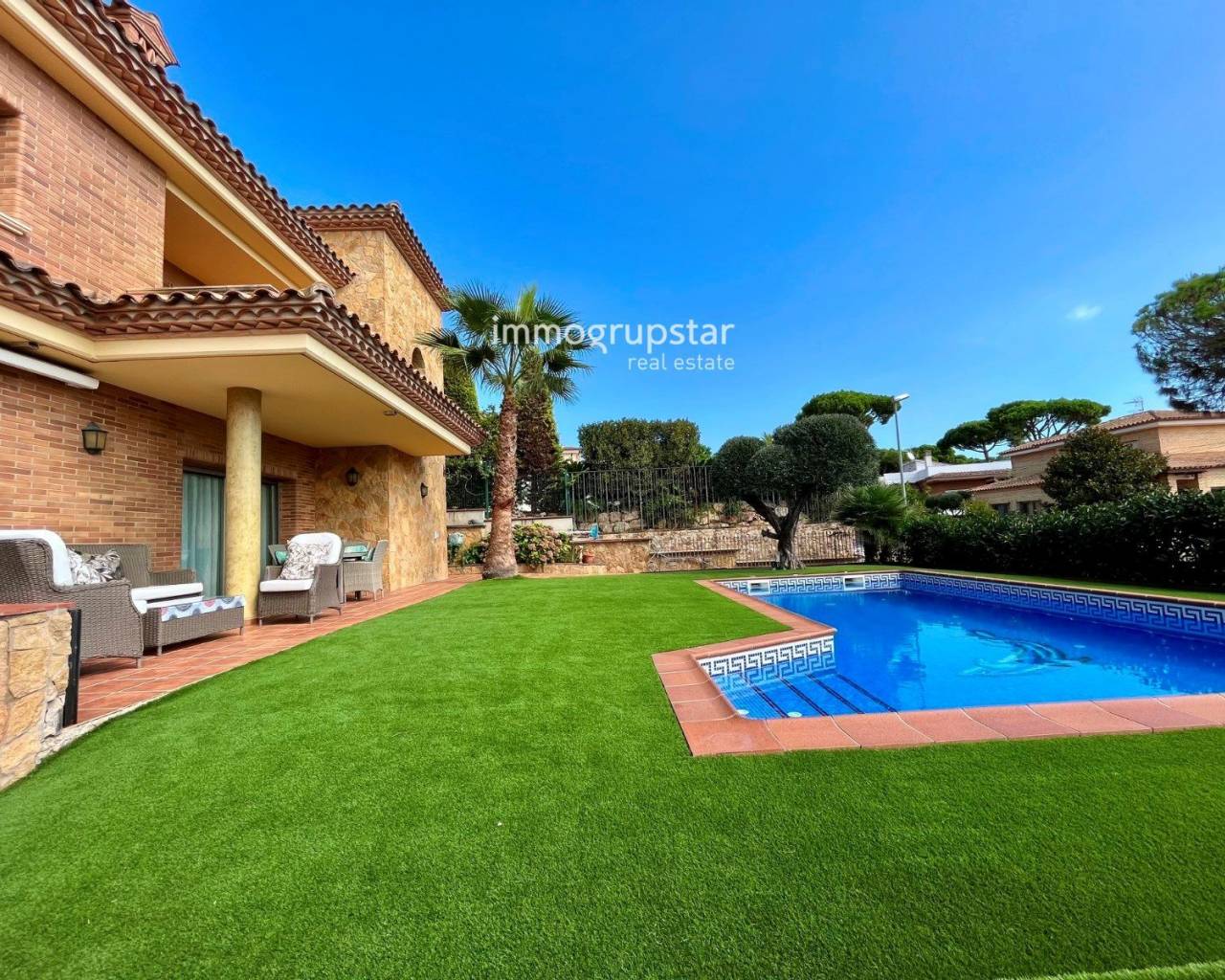 Espectacular chalet situado en el centro y a 5 minutos andando de la playa. Ideal para una familia grande. Consta de casi 500m² construidos, que se distribuyen en tres plantas: La planta sótano con zona de gimnasio, sauna y un baño, más zona garaje que puede albergar hasta 5 coches. En esta planta es donde se encuentran los cuartos de maquinaria y servicios de la casa. En la planta principal contamos con amplia cocina semi abierta que da al amplio y soleado salón-comedor con salida a porche cubierto con zona ajardinada y piscina de agua salada. En la misma planta hay 2 habitaciones tipo suite, una de ellas con vestidor, y un aseo. Y en la planta primera se encuentran las 5 habitaciones, 2 de ellas tipo suite, y 1 baño completo y dos terrazas con vistas a Platja d'Aro. La casa está equipada con calefacción gasoil, aire acondicionado en la planta principal y con la posibilidad en la planta primera, dispone de espacio preparado para la instalación de ascensor interior. Fue diseñada y construida por el constructor como vivienda principal, muy práctica y muy buenos acabados.