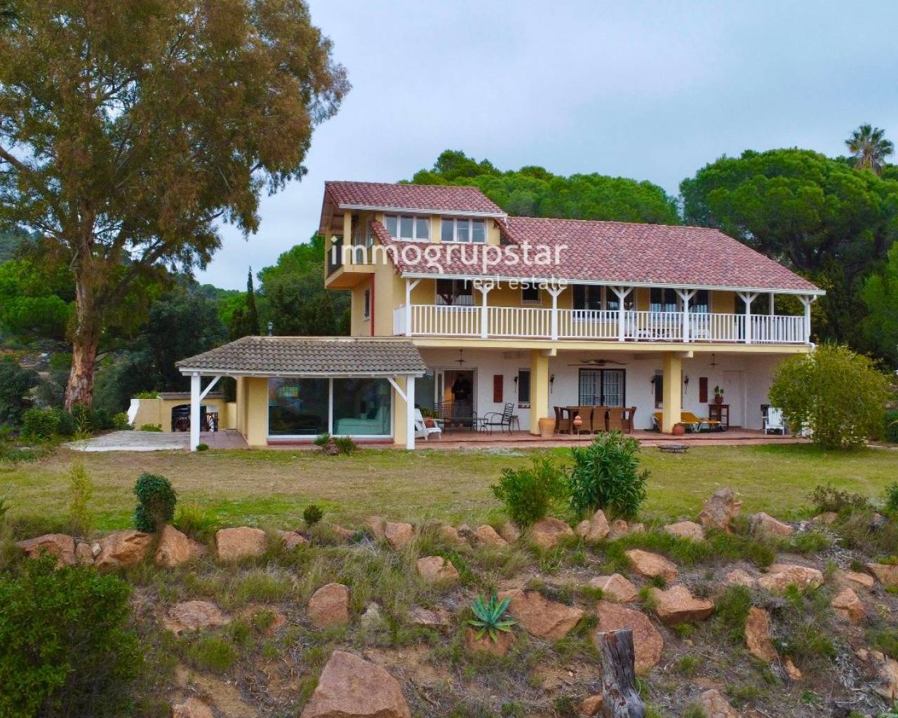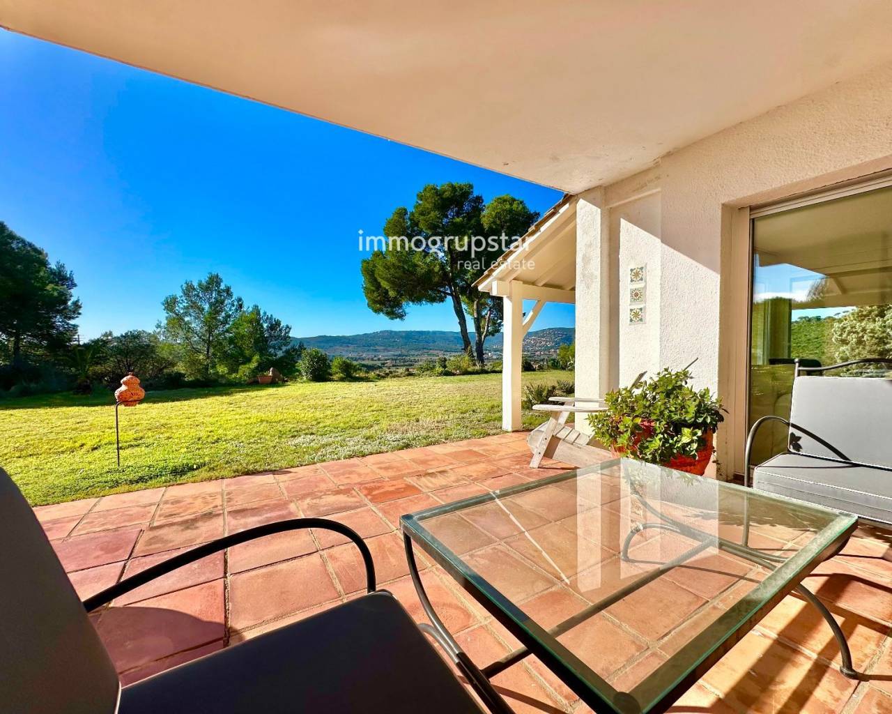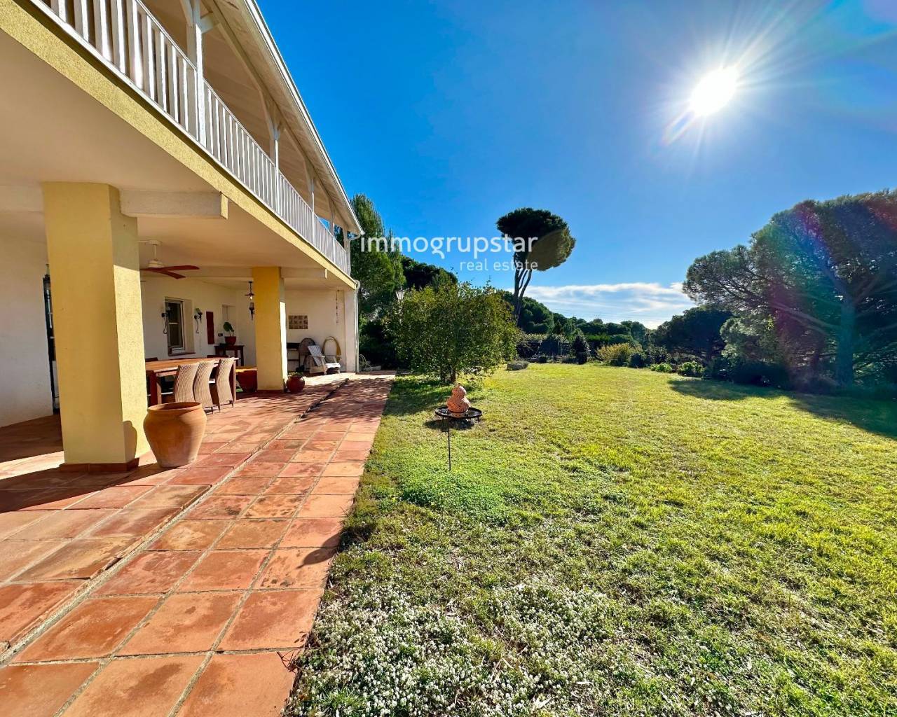 Inmueble en EXCLUSIVA de Immogrupstar.Magnífica villa situada en la Costa Brava, en el municipio de Calonge, en una urbanización con una zona comunitaria que cuenta con una hermosa piscina, una pista de tenis y un sala polivalente a disposición de los copropietarios.La propiedad, ubicada a solo 3 km de la playa, disfruta de una excelente privacidad, de una espectacular vista panorámica de la naturaleza circundante y de una agradable vista parcial al mar. La vivienda, de estilo americano y orientada al suroeste, disfruta de una magnífica luminosidad durante todo el día. Cuenta con elegantes suelos y baños de mármol, que aportan un toque de distinción y calidad.El chalet se distribuye en tres plantas, con una superficie construida de 221 m², más amplias terrazas, sobre una generosa parcela de 1.555 m², ideal para disfrutar del aire libre y la tranquilidad.Planta baja, a nivel de jardín: amplio comedor acristalado con vistas al exterior, cocina independiente totalmente funcional, aseo de cortesía y una agradable terraza cubierta, perfecta para comidas y reuniones al aire libre.Primera planta: dos habitaciones dobles, un baño completo y una suite principal con baño equipado con hidromasaje. Todas las habitaciones tienen acceso directo a una terraza cubierta, aportando luminosidad y conexión con el exterior.Segunda planta: una habitación independiente con salida a su propia terraza privada, ideal como dormitorio adicional, despacho o espacio polivalente.La propiedad dispone de licencia turística (HUT), lo que la convierte en una excelente oportunidad tanto como residencia habitual o vacacional, como inversión con alto potencial de rentabilidad.Un chalet único que combina confort, privacidad, vistas y una ubicación privilegiada en la Costa Brava.
