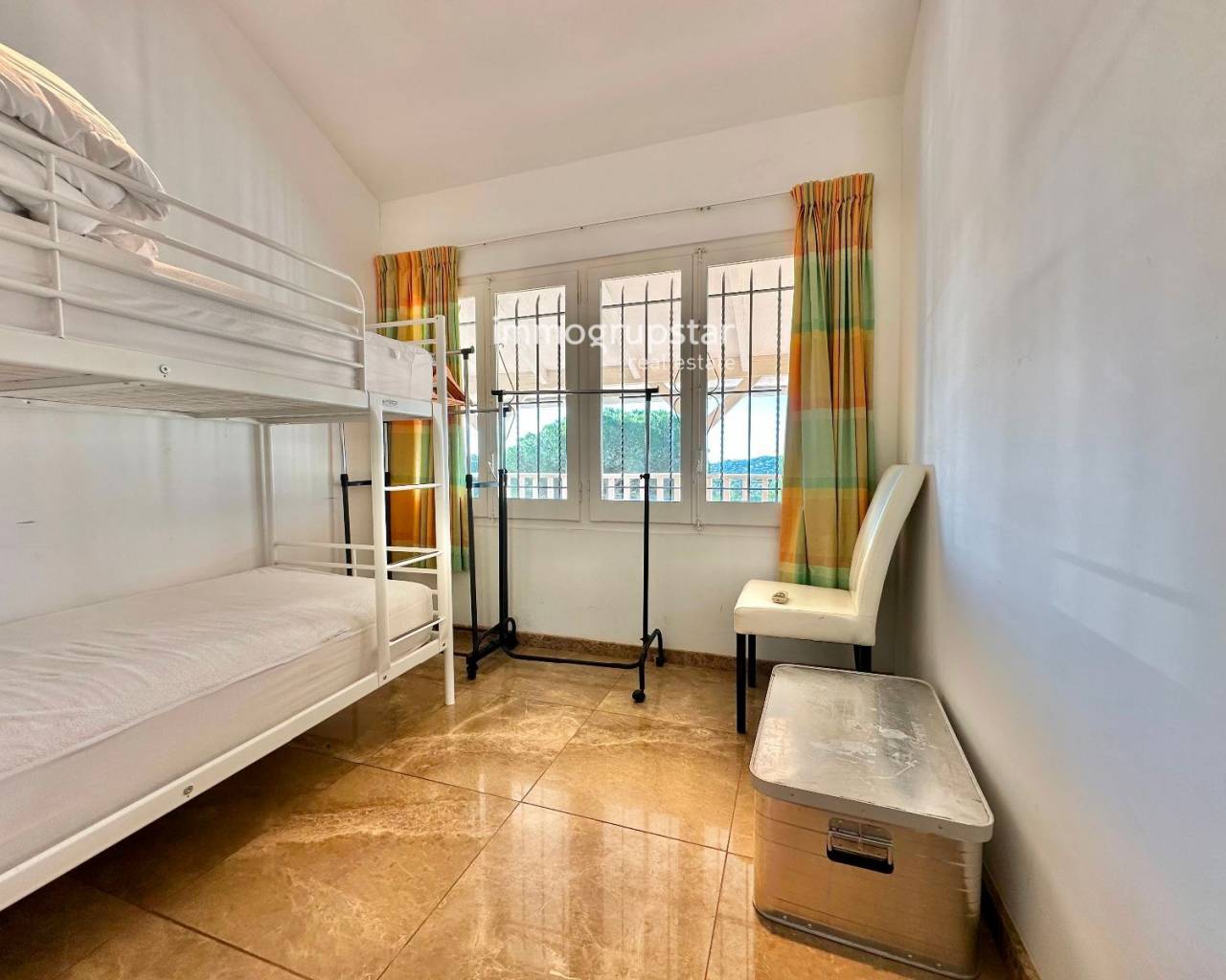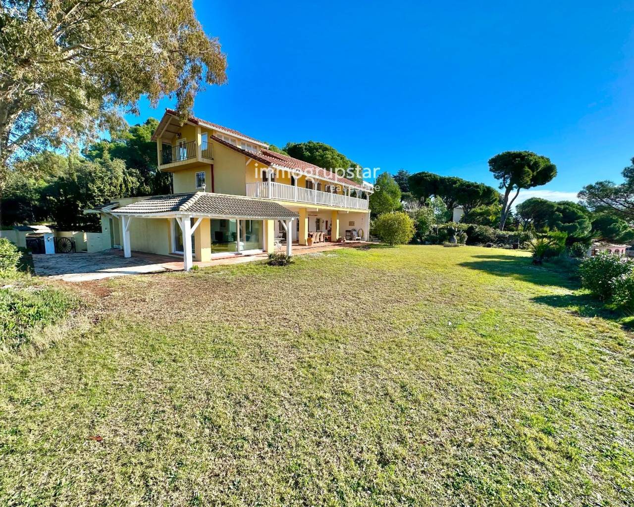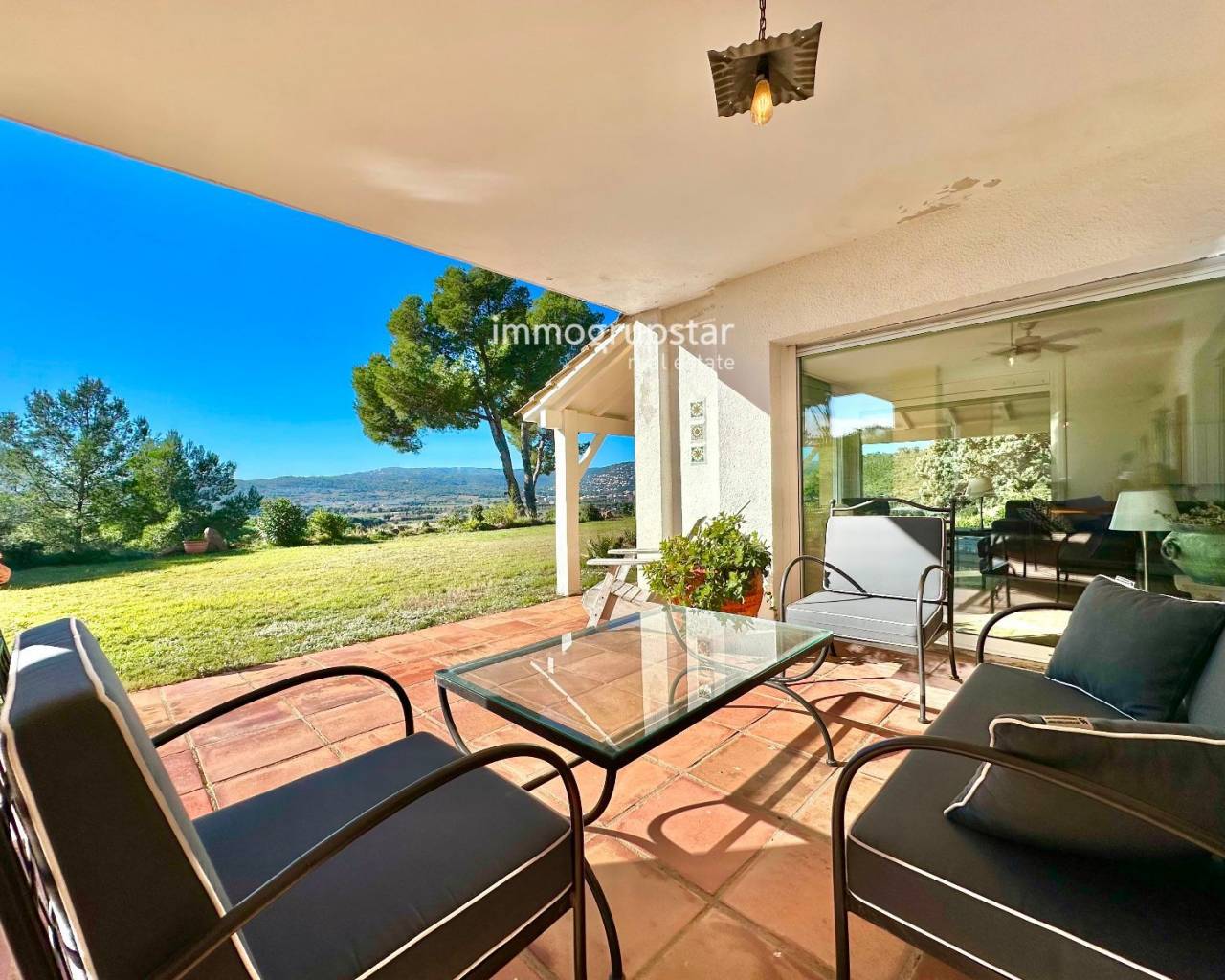 Inmueble en EXCLUSIVA de Immogrupstar.Magnífica villa situada en la Costa Brava, en el municipio de Calonge, en una urbanización con una zona comunitaria que cuenta con una hermosa piscina, una pista de tenis y un sala polivalente a disposición de los copropietarios.La propiedad, ubicada a solo 3 km de la playa, disfruta de una excelente privacidad, de una espectacular vista panorámica de la naturaleza circundante y de una agradable vista parcial al mar. La vivienda, de estilo americano y orientada al suroeste, disfruta de una magnífica luminosidad durante todo el día. Cuenta con elegantes suelos y baños de mármol, que aportan un toque de distinción y calidad.El chalet se distribuye en tres plantas, con una superficie construida de 221 m², más amplias terrazas, sobre una generosa parcela de 1.555 m², ideal para disfrutar del aire libre y la tranquilidad.Planta baja, a nivel de jardín: amplio comedor acristalado con vistas al exterior, cocina independiente totalmente funcional, aseo de cortesía y una agradable terraza cubierta, perfecta para comidas y reuniones al aire libre.Primera planta: dos habitaciones dobles, un baño completo y una suite principal con baño equipado con hidromasaje. Todas las habitaciones tienen acceso directo a una terraza cubierta, aportando luminosidad y conexión con el exterior.Segunda planta: una habitación independiente con salida a su propia terraza privada, ideal como dormitorio adicional, despacho o espacio polivalente.La propiedad dispone de licencia turística (HUT), lo que la convierte en una excelente oportunidad tanto como residencia habitual o vacacional, como inversión con alto potencial de rentabilidad.Un chalet único que combina confort, privacidad, vistas y una ubicación privilegiada en la Costa Brava.