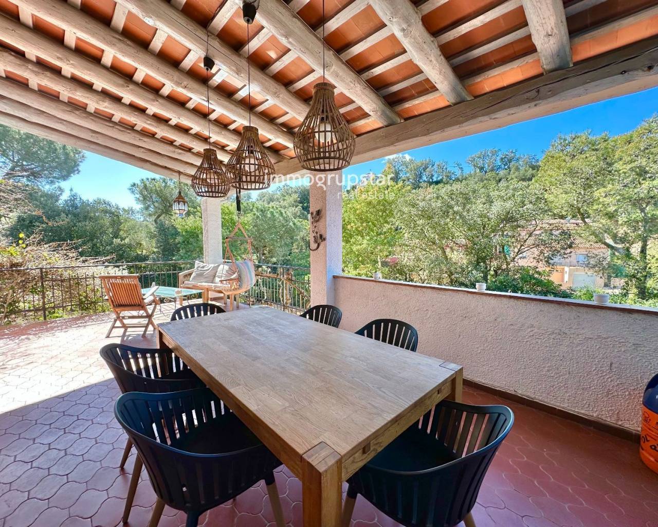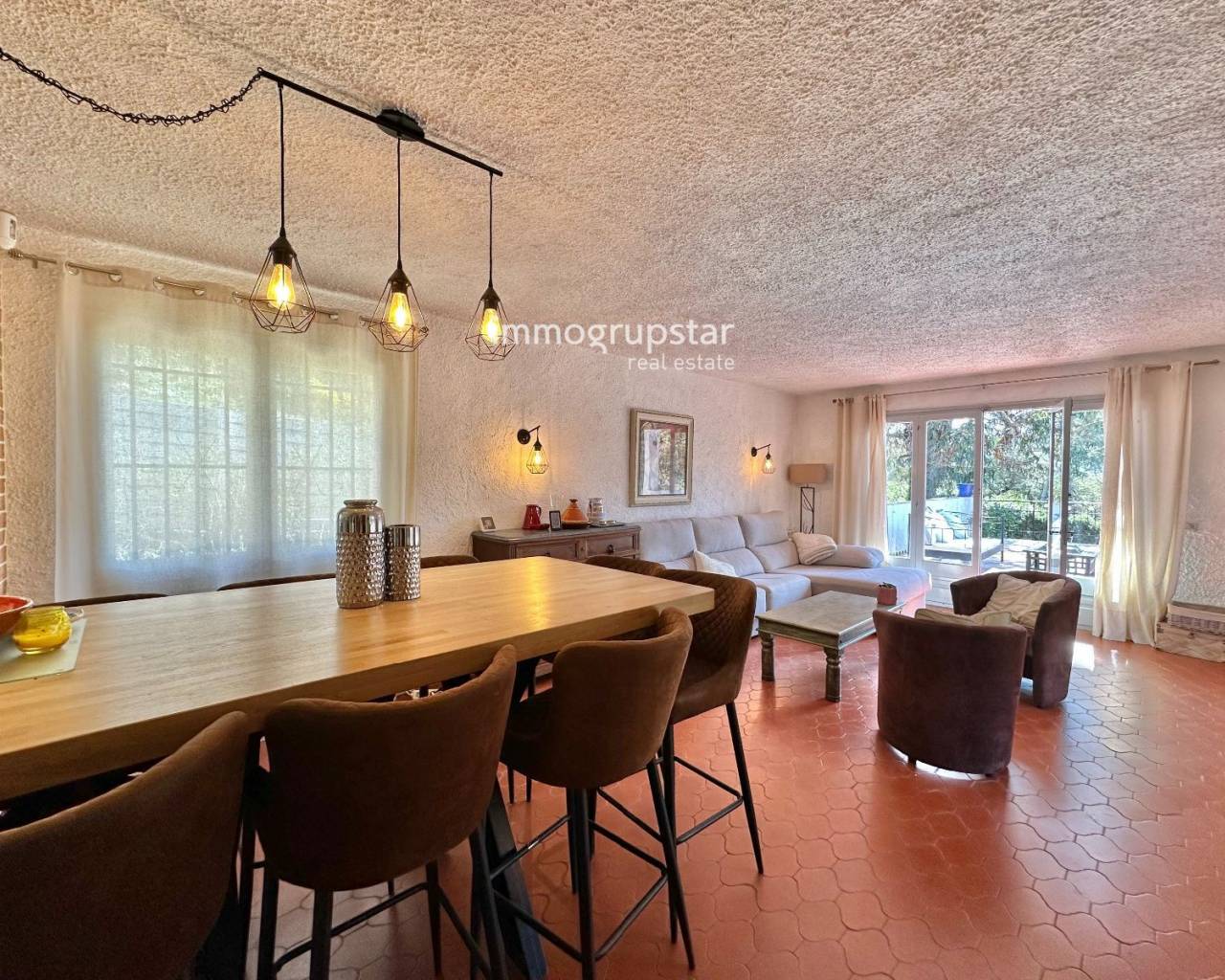 Descubre esta acogedora propiedad situada en la urbanización Río de Oro, en Calonge, rodeada de un entorno natural que garantiza tranquilidad y privacidad.La vivienda principal cuenta con 3 amplios dormitorios, 3 baños completos, una sala de estar con chimenea y cocina independiente, ofreciendo un espacio ideal tanto para familias numerosas como para quienes buscan comodidad y amplitud. La propiedad incluye un apartamento adicional con dos domitorios, 1 baño completo, salón- comedor con cocina equipada , aire acondicionado reversible y convector eléctrico, ideal como espacio independiente para invitados, despacho y zona de ocio.Además de calefacción de gas para un confort óptimo durante todo el año.En el exterior, destaca una espectacular piscina de 10 x 4,5 metros, perfecta para disfrutar del clima mediterráneo, junto con las terrazas que permiten aprovechar al máximo cada rincón y orientación de la vivienda. Todo ello sobre una parcela de 1000 m², que ofrece amplitud y múltiples posibilidades.Además, dispone de aparcamiento exterior con capacidad para 3 coches.Como valor añadido, la propiedad cuenta con licencia turística, lo que la convierte en una excelente oportunidad tanto como residencia habitual como inversión con alta rentabilidad.Una vivienda única en un entorno natural incomparable.