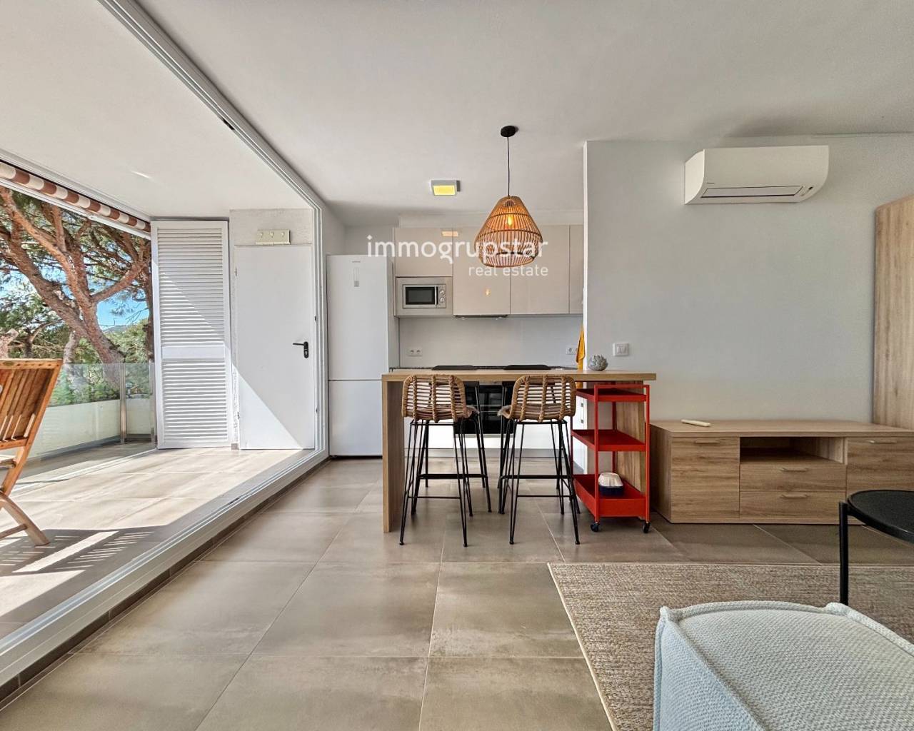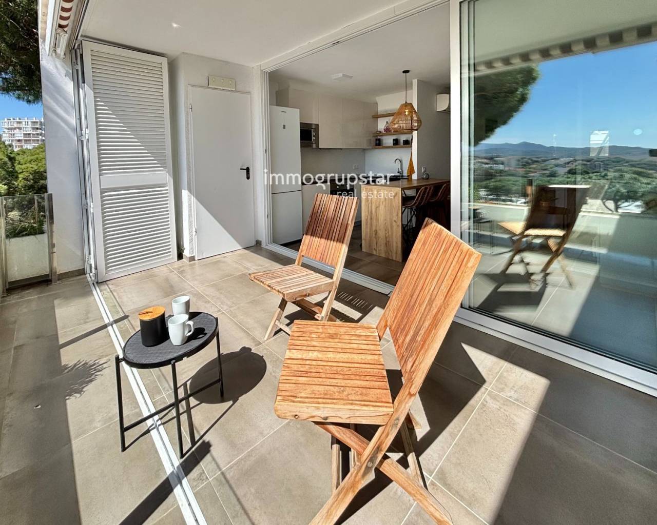 Inmueble en EXCLUSIVA de Immogrupstar.Precioso apartamento tipo ático completamente reformado con vistas magníficas al mar y montaña en Playa de Aro, Costa Brava. Ubicado a pocos minutos a pied del mar en la tranquila y demandada zona de Politur. La vivienda cuenta con 2 habitaciones,1 baño completo y espacio abierto con salon, comedor y cocina ideal para vacaciones con la familia o como segunda residencia. El piso destaca por su estilo moderno y funcional, con una cocina totalmente equipada. Uno de sus grandes atractivos es su terraza de 14m2, con orientación al sur, que proporciona abundante luz natural durante todo el día y permite disfrutar del clima mediterráneo y puesta del sol .La vivienda cuenta con ventanas de aluminio doble cristal con ruptura de ponte térmico que garantizan una buena aislación y confort, además está equipada con aire acondicionado calor/frio.Está situado a tan sólo 15 minutos caminando del centro de Playa de Aro con sus ocios, tiendas, negocios, barres y restaurantes. También existe la opción de tener acceso a la gran piscina del restaurante: por un pequeño importe la puedes disfrutar durante toda la temporada de verano, situada a sólo 200 metros del apartamento. Una oportunidad única para disfrutar de tranquilidad cercanía al mar en una de las mejores zonas de la Costa Brava. Para saber más información, contacta con Immogrupstar.Estado del inmueble : muy bueno Superficie Útil : 49m2 Construida : 57m2 + 14 m2 terraza Año de Construcción : 1974 Certificado Eficiencia Energética (CEE) : Consumo : E 192 kwh/m2 año Emisiones : 40 kg Co2/m2 año Registro : 7LB8Q4WWZCédula de Habitabilidad : CHG00162812001No incluidos en el precio : ITP (10%), gastos notariales y registrales según arancel. Honorarios : los honorarios de gestión inmobiliaria están incluidos en el precio de venta.Propietario : no gran tenedorAICAT : 4788 - API : A10132