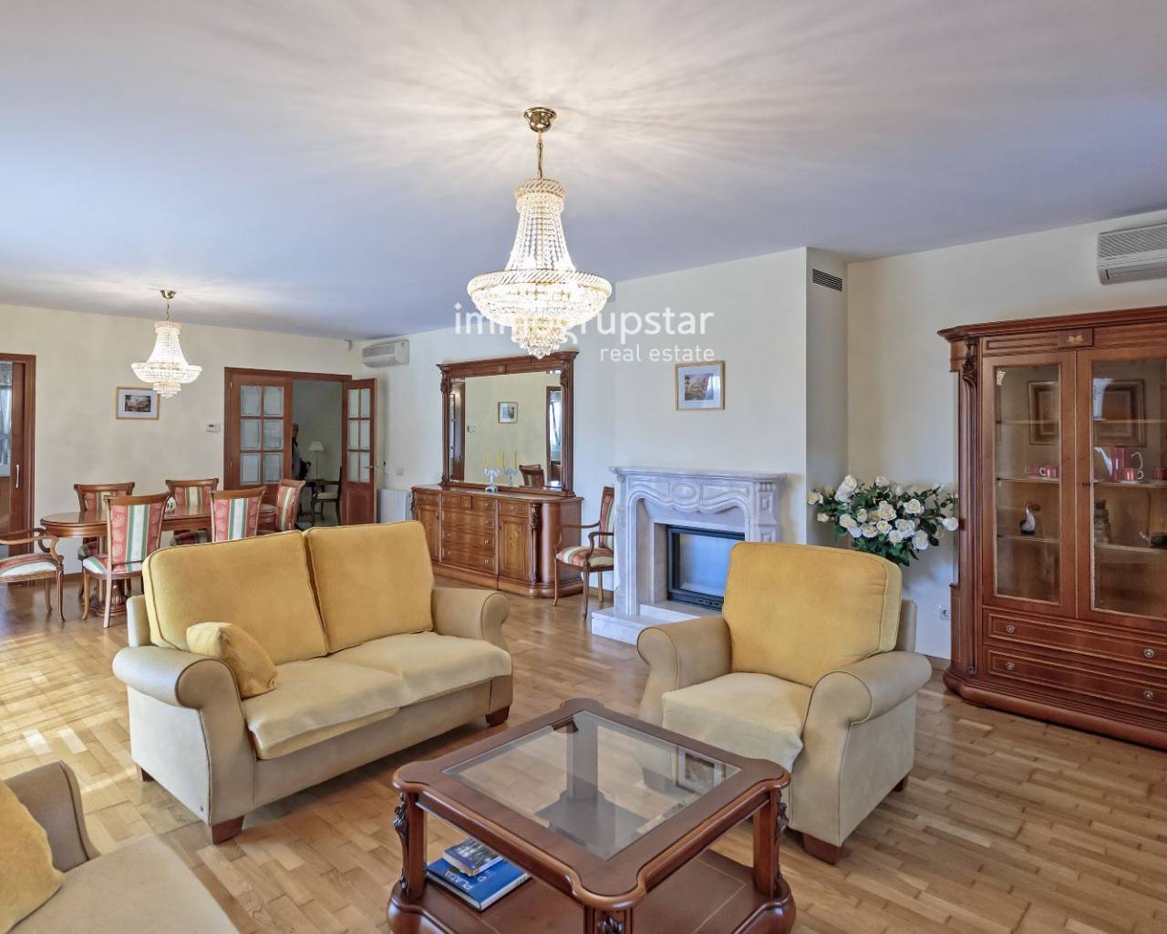 Вилла с туристической лицензией в привилегированном месте Platja d'Aro Эксклюзивная вилла площадью 349 м², построенная на участке площадью 1003 м², расположена в одном из самых престижных районов Platja d'Aro, всего в 3 минутах ходьбы от торгового центра с его известными ресторанами, магазинами и кафе. Дом состоит из двух этажей: Первый этаж: просторный гараж площадью 50 м², элегантная прихожая, холл, полностью оборудованная отдельная кухня, прачечная, гостиная-столовая с выходом на солнечную террасу и в сад, а также спальня и ванная комната. Первый этаж: просторный коридор, три спальни, две полностью оборудованные ванные комнаты и терраса с приятным видом. Снаружи недвижимость предлагает ухоженный сад, окружающий весь дом, зоны отдыха, мощеные подъездные пути и частный бассейн площадью 34 м², идеально подходящий для наслаждения средиземноморским климатом. Расположенная всего в 1,5 км от пляжа Плайя-Гранде в Плайя-д'Аро, в тихом жилом районе с хорошими соседями круглый год, эта вилла сочетает в себе комфорт, уединение и отличное расположение.